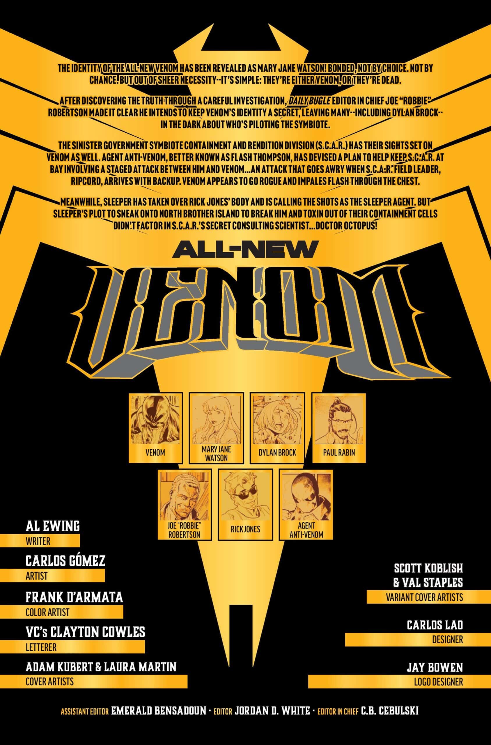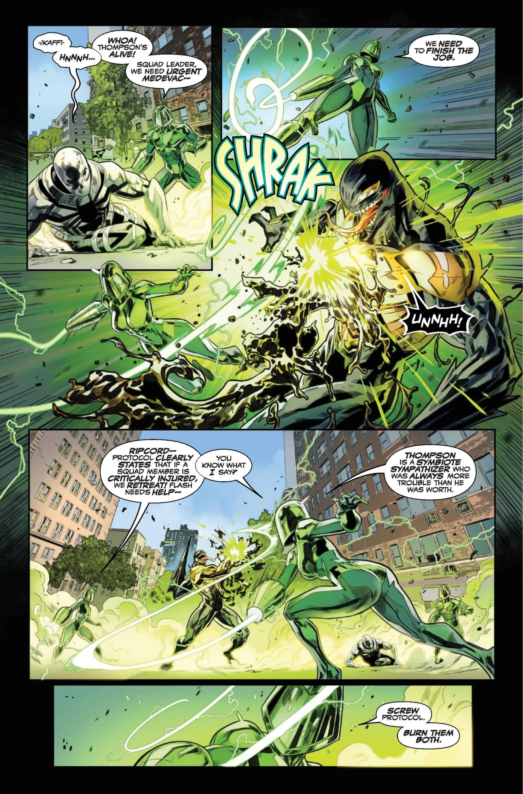 As Venom battles the Symbiote Squad at the Daily Bugle, the Sleeper Agent attempts a daring jailbreak on North Brother Island… neither of them knowing that S.C.A.R. has a superior new ally in the war on symbiotes!