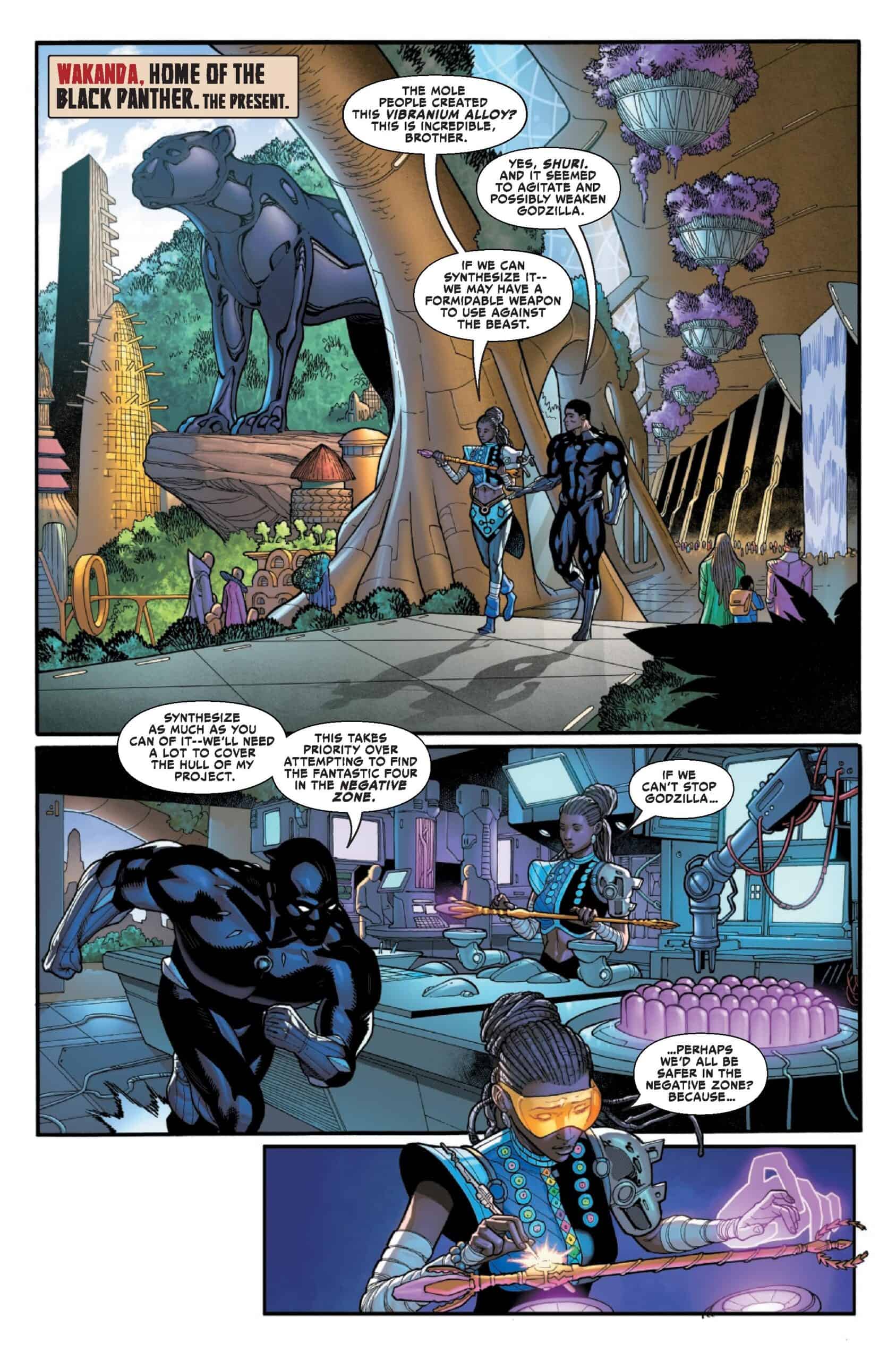 Plus, Black Panther makes a shocking discovery about the nature of Vibranium and what is driving Godzilla’s rampage! But will it be enough to make a difference in the wake of the disappearance of Mister Fantastic, the Invisible Woman, and the entire Baxter Building?!