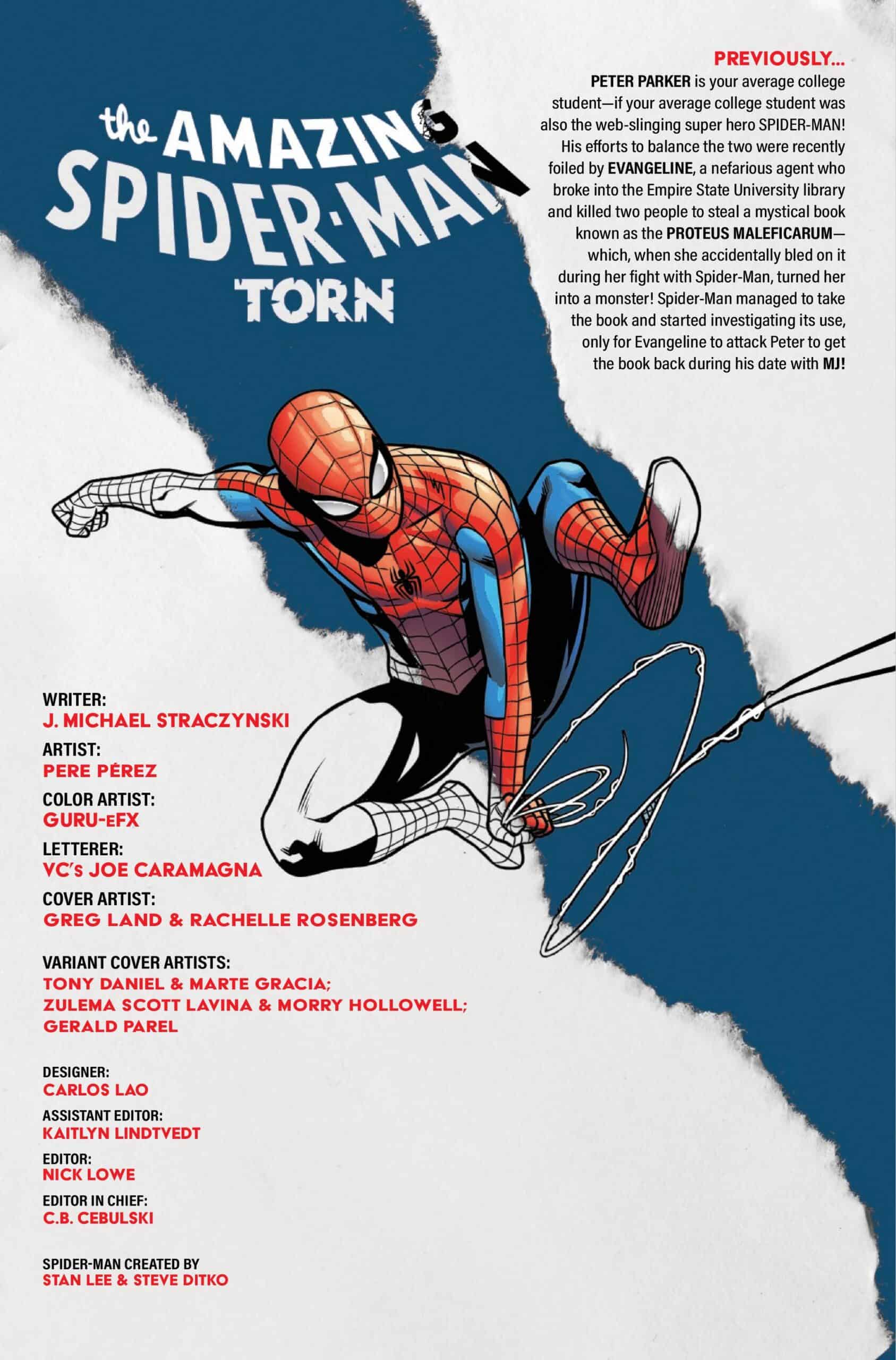J. Michael Straczynski, one of the most impactful writers in Spider-Man history, returns to the webbed wonder in AMAZING SPIDER-MAN: TORN, a five-issue limited series. Straczynski will be joined by acclaimed artist Pere Pérez (TVA, Venom War: Carnage).