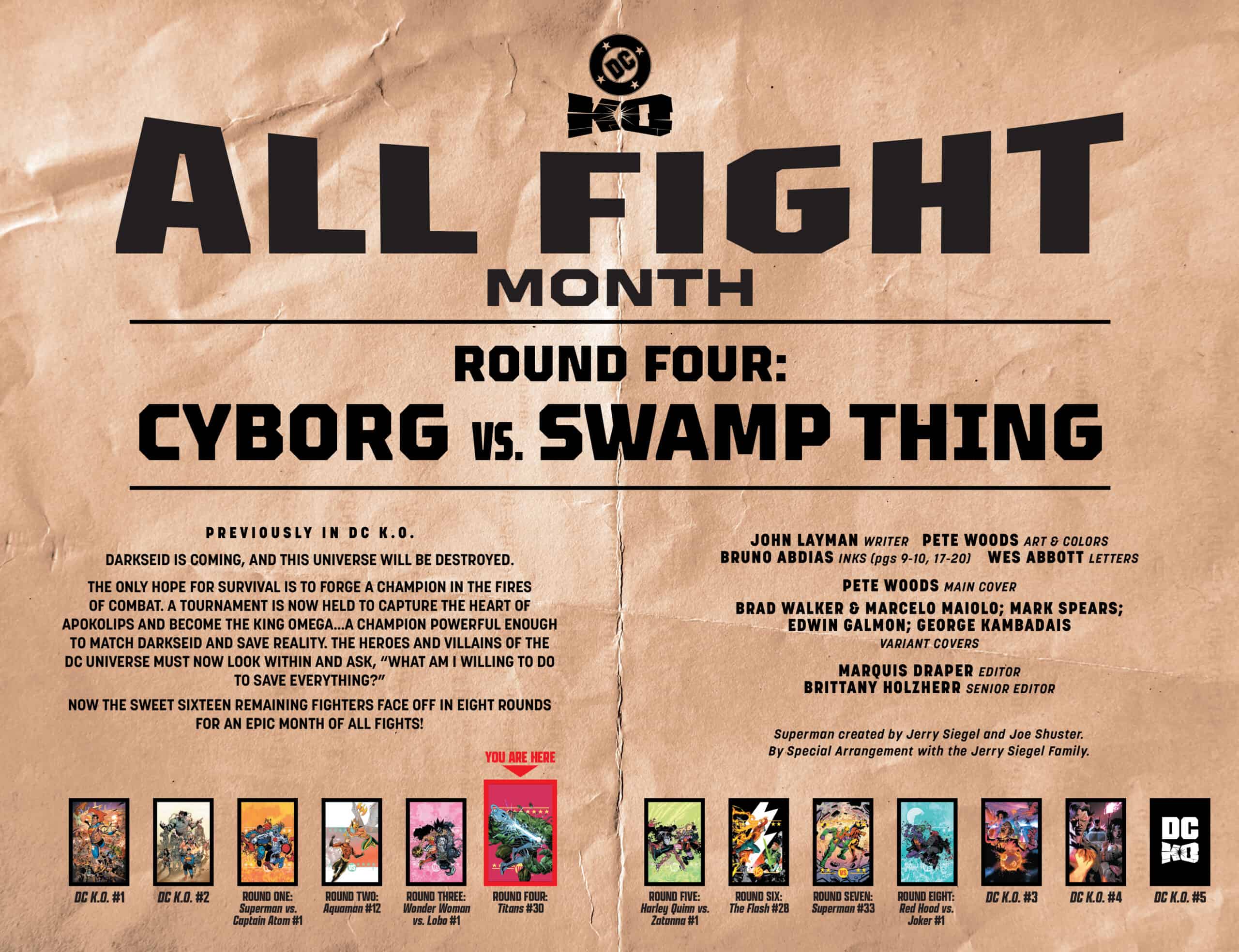 Fight Month continues as the bell rings on Round 4: Cyborg Vs Swamp Thing in Titans #30, on shelves and digital platforms December 17, 2025, from DC Comics