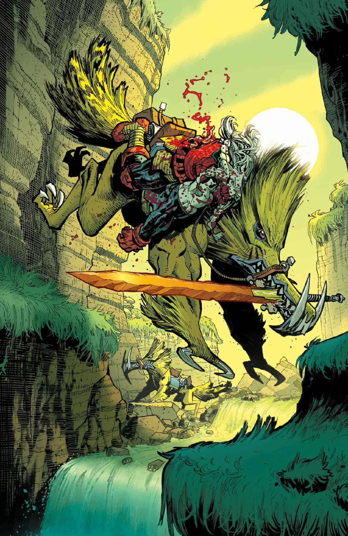 “The arrival of spring heralds the start of INVINCIBLE UNIVERSE: BATTLE BEAST’s blood-soaked second arc. The issue picks up right where we left off with #6 and things are going to get wild quickly!”