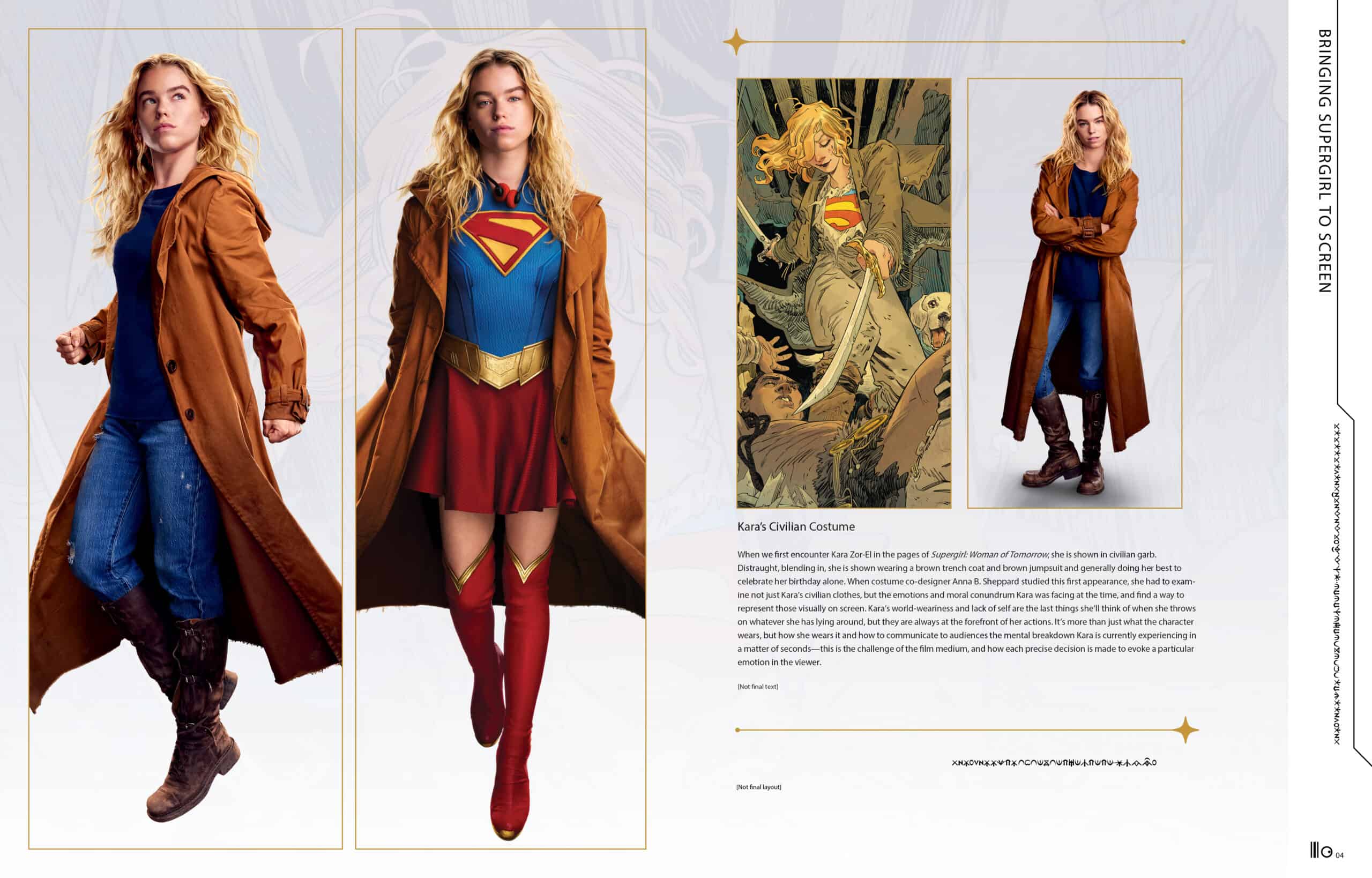 Evely’s expressive illustrations appear alongside early cinematic explorations, revealing how themes, motifs, and character moments traveled from layout to finished page, and from storyboard to set. New interviews with the comic’s creators and the filmmakers behind the much-anticipated summer epic provide insight into the collaborative process that guided Kara’s transformation across mediums.