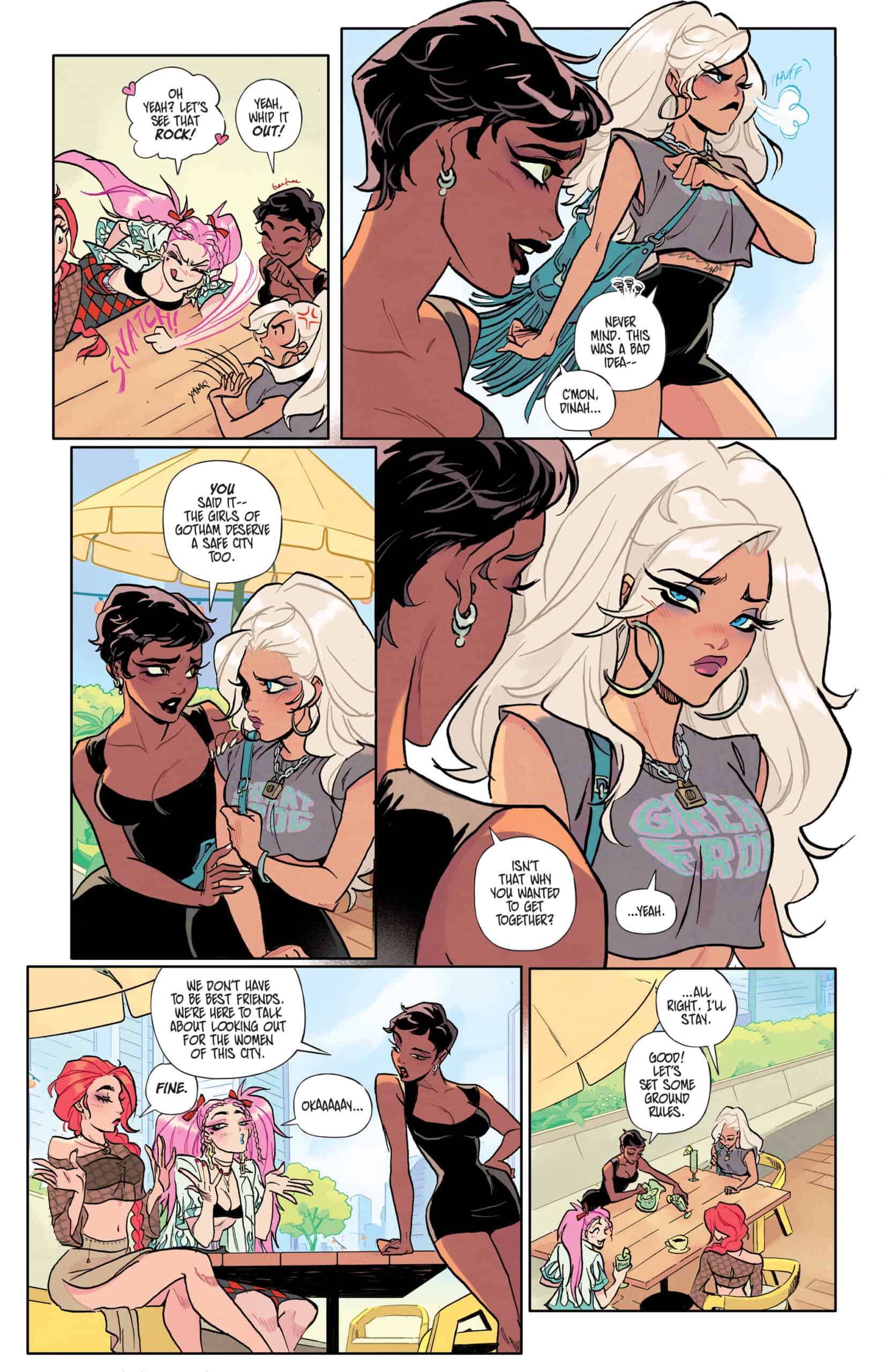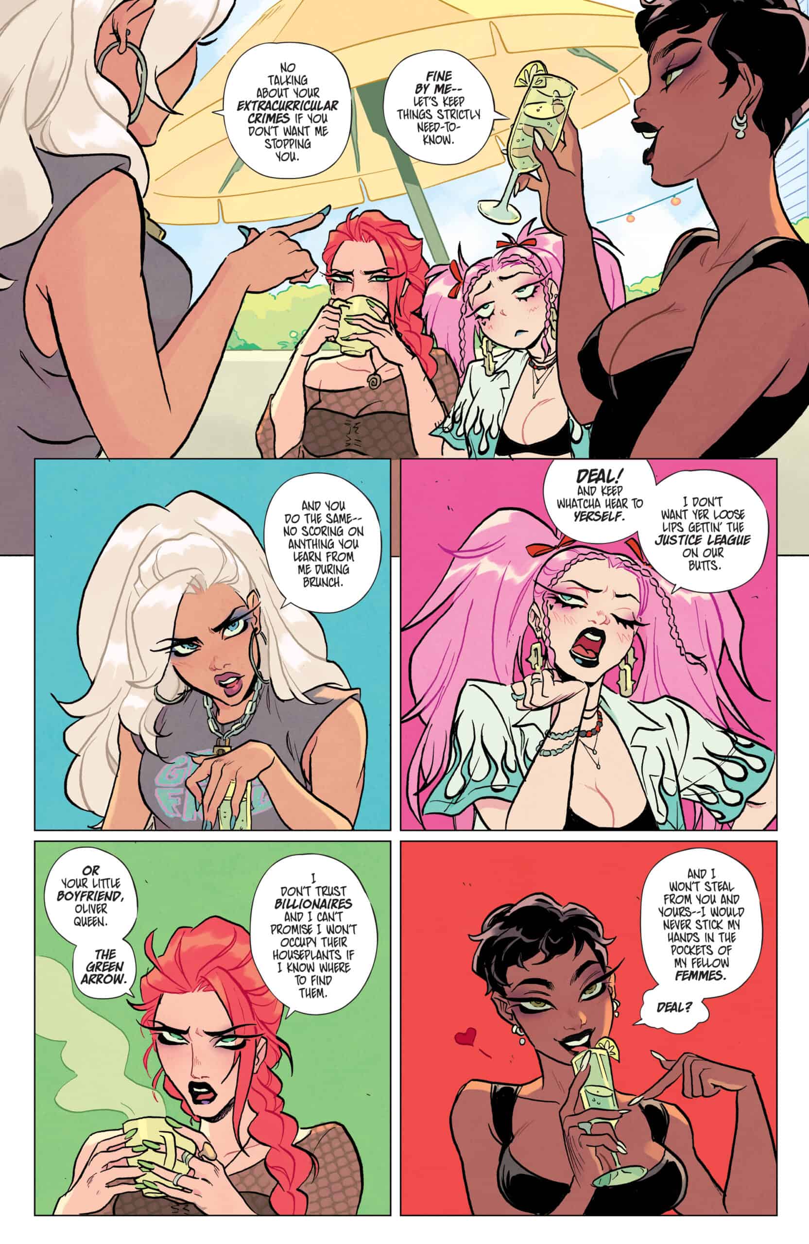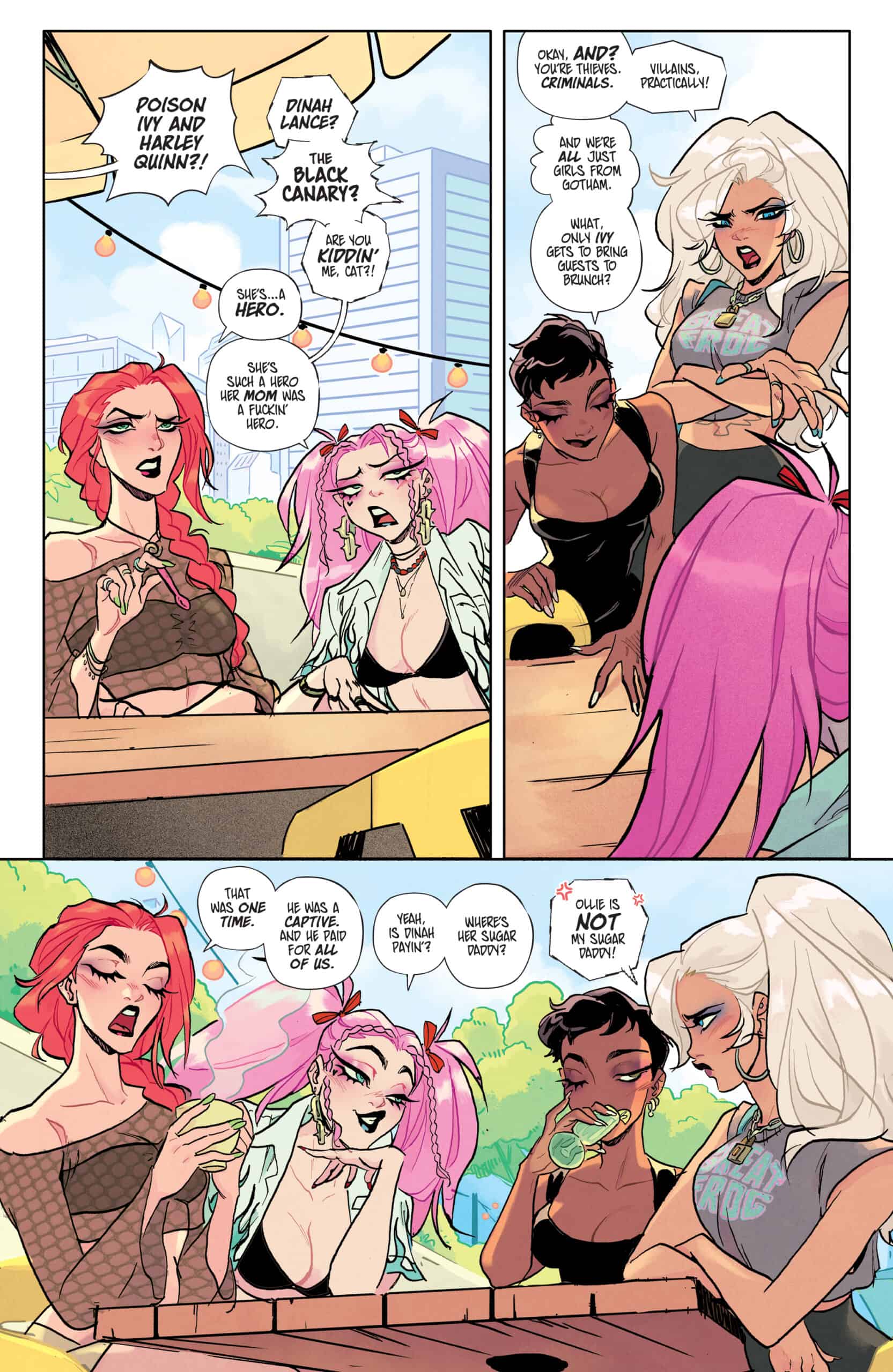 These four fabulous women aren’t meeting to discuss any of that. At least, not willingly. There’s a killer on the loose in Gotham City — a killer of women. And when Black Canary realizes stopping the murders requires more criminal company than she’s used to keeping, she finds herself reluctantly teaming up with the infamous Gotham City Sirens for the hunt. Easier said than done when the four of them can barely make it through one lousy brunch