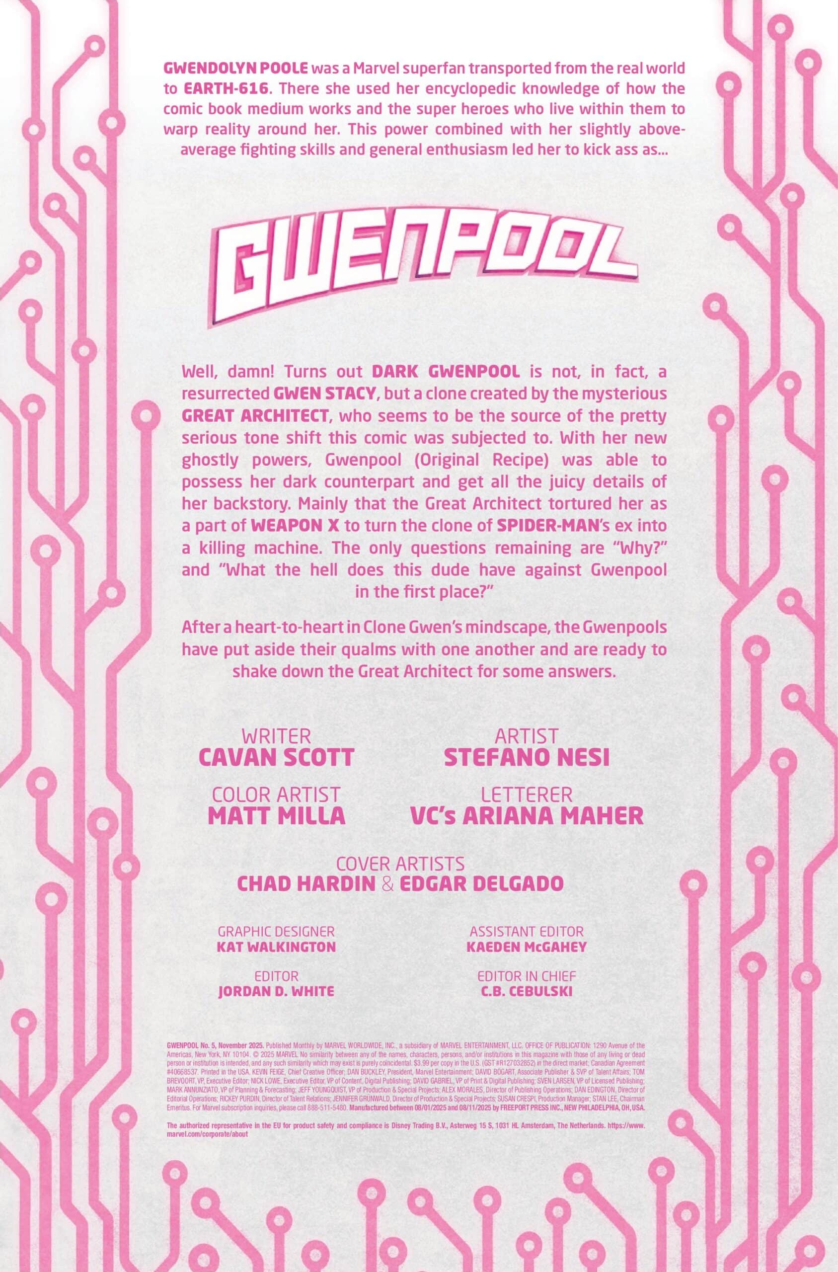 Gwen Stacy returns as the darker, deadlier, and even more unhinged GWENPOOL, and who better to help Spidey navigate this soul-crushing revelation than the medium-shattering, attention-seeking Marvel Comics superfan that is the original Gwenpool!