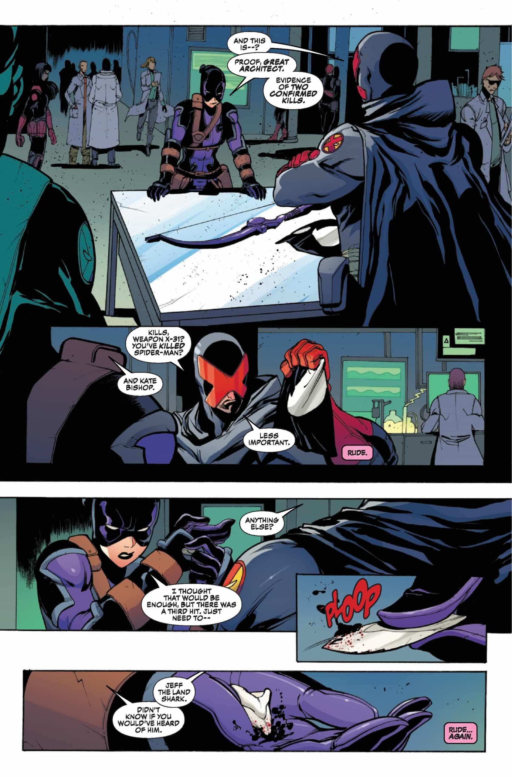 Spider-Man is dead. Hawkeye is dead. Gwenpool is dead. EVERYONE is dead. Except Gwen Stacy. Gwen Stacy’s alive — and she’s FURIOUS! They wanted a weapon. They created retribution. Plus: The Great Architect’s secret identity revealed.