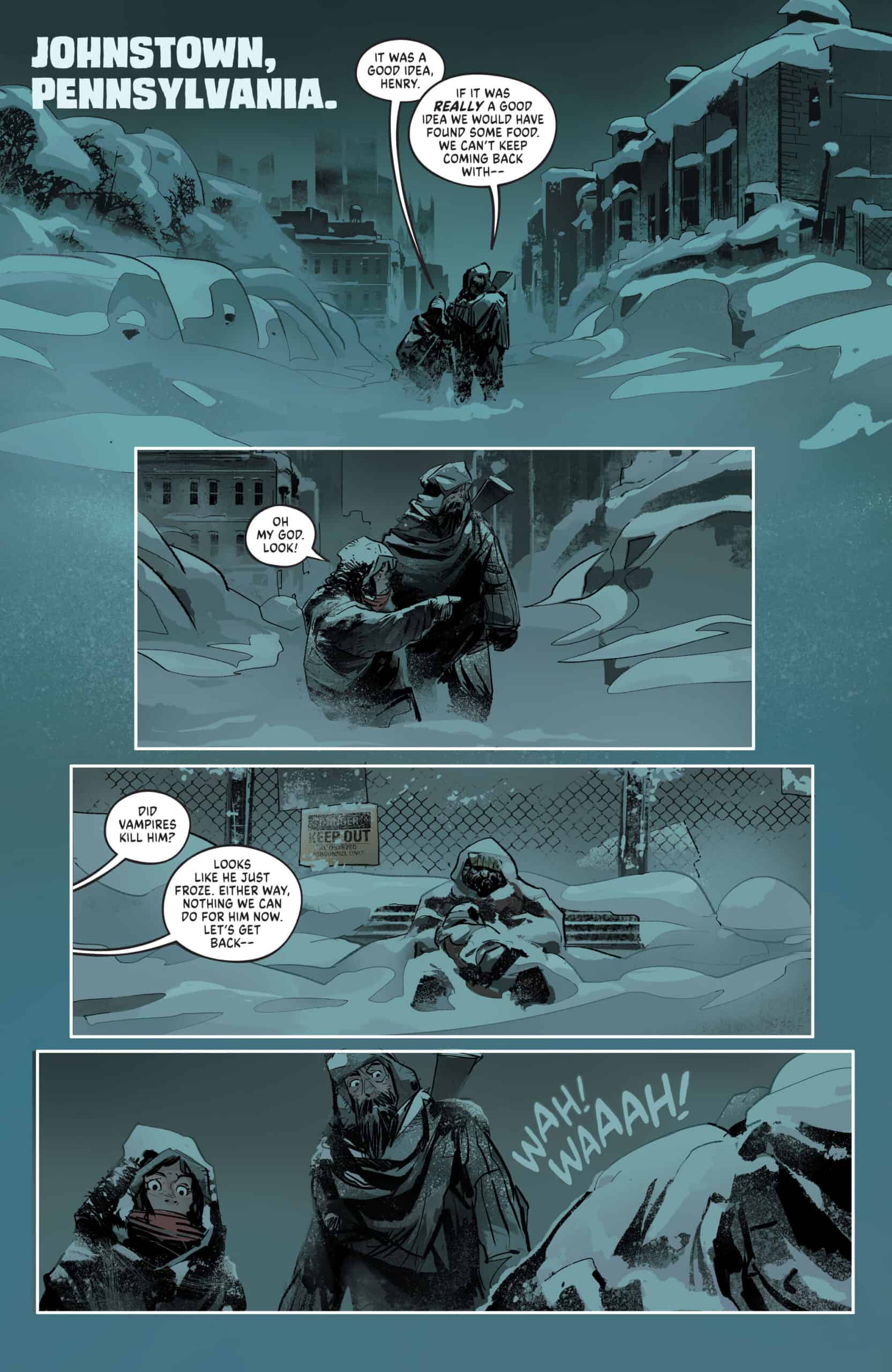 Now it’s the dead of winter, and any hope for a fragile truce between the Green Arrow-led human heroes and vampire queen Barbara Gordon’s army has been dashed by Damian Wayne and his guerrilla fighters. He’s the only one fighting back against the bloodthirsty hordes, leaving Green Arrow with a choice: Does he stand and fight or sacrifice the boy in the name of peace?