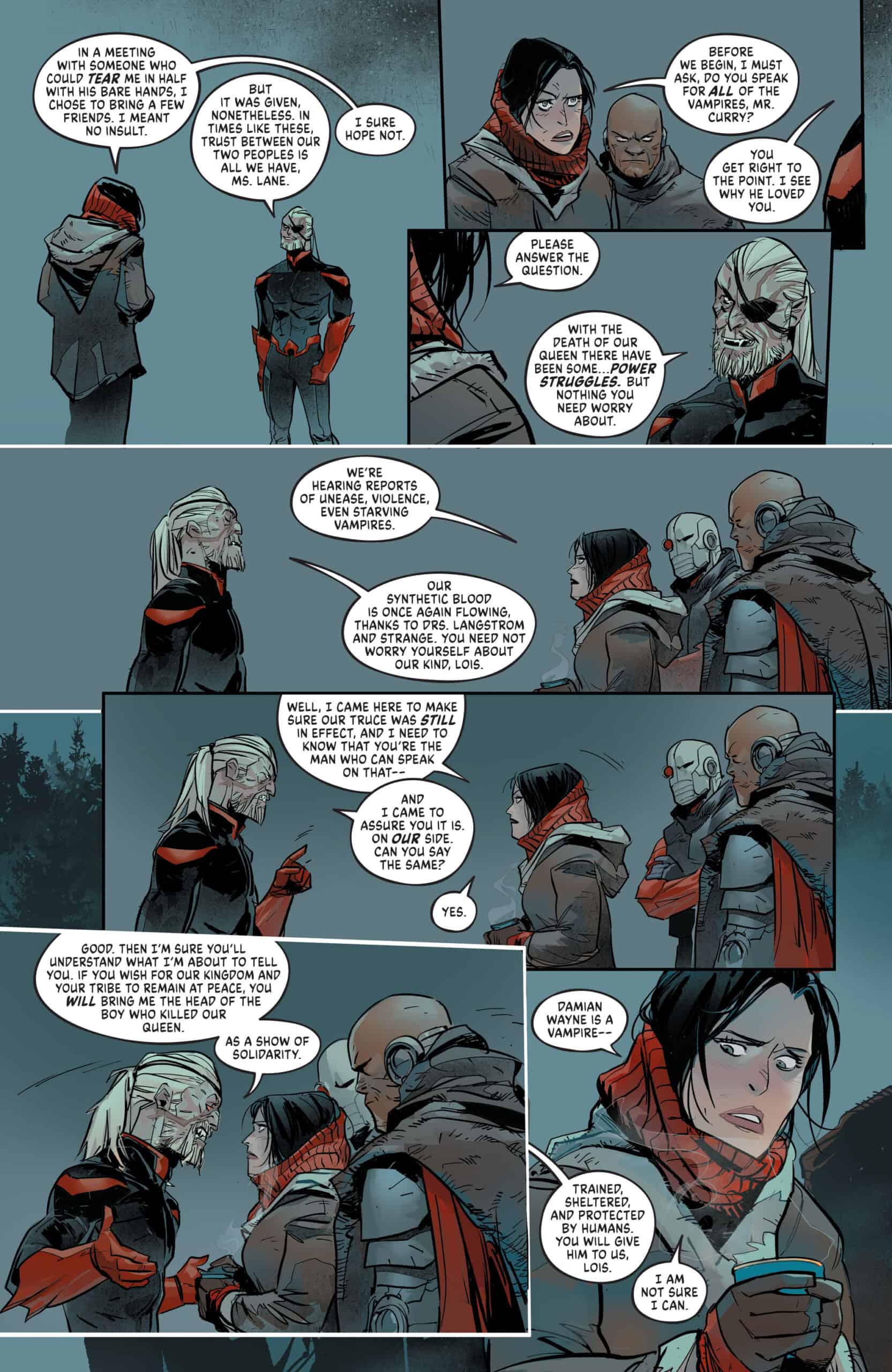 The peace between vampires and heroes is wearing thin. Lois Lane will try and negotiate a way to maintain a truce, but with Damian’s relentless attacks on the vampire queen and her armies, the only thing that might be able to bring them together is a…Miracle.