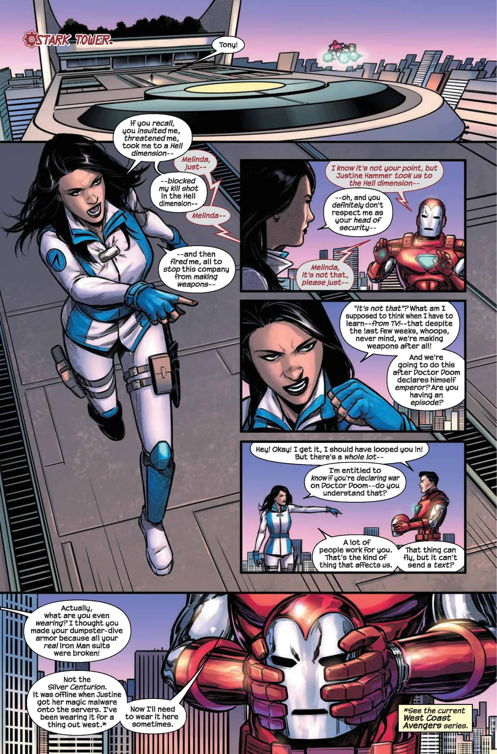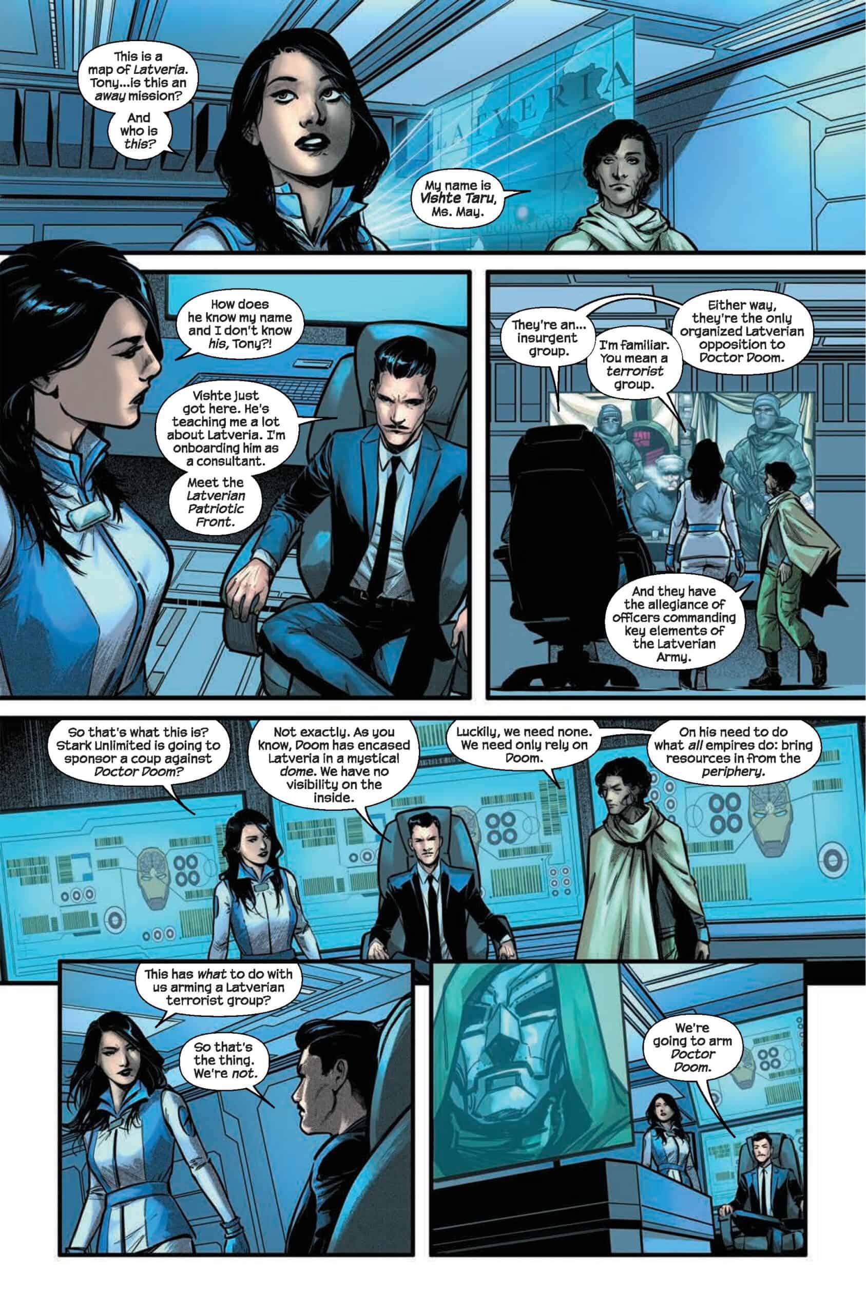 THE IRON SELLOUT! After witnessing firsthand the devastation of war, Tony Stark famously divested his company from the weapons trade. Then Orchis and Feilong came along, and a furious Iron Man watched them dismantle his legacy. Now Stark Unlimited is going back to its roots as Tony publicly announces a FULL-SCALE RETURN TO WEAPONS MANUFACTURING! What?! Why is Iron Man meeting with rebels outside Latveria? Why is the Winter Guard after him (this time)? Why is Doctor Doom sending angry emissaries to Stark’s door? WHAT IN ALL HELL IS TONY STARK DOING?!