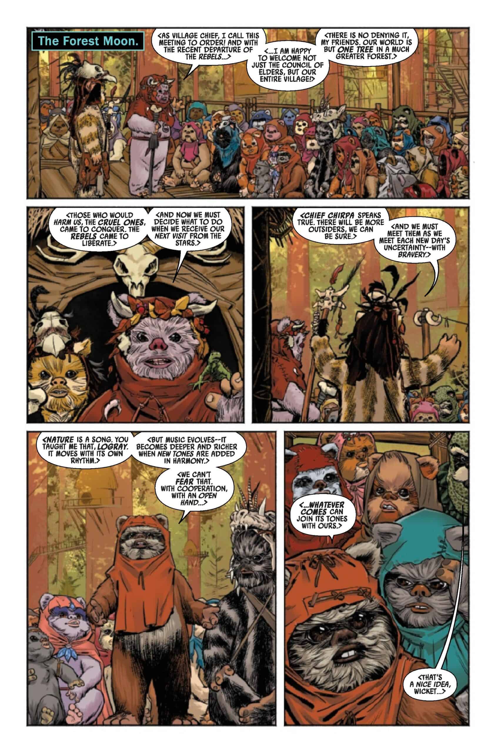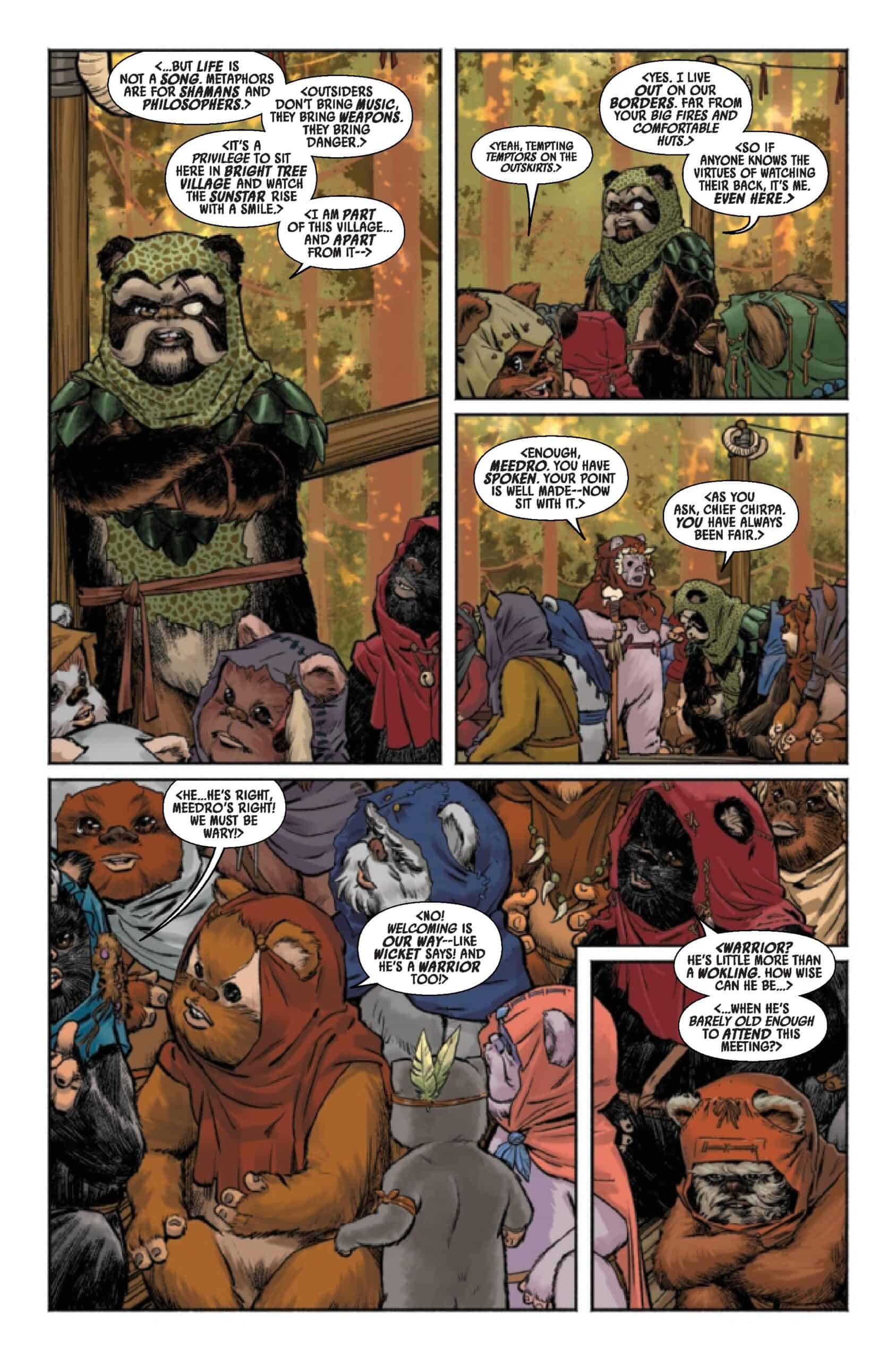 The Ewok Adventure, also known as Caravan of Courage, which followed up on the popularity of the adorable—but formidable—creatures who secured the Rebellion’s victory during the Battle of Endor in Return of the Jedi, continues this week in Star Wars: Ewoks #1 (of 4)
