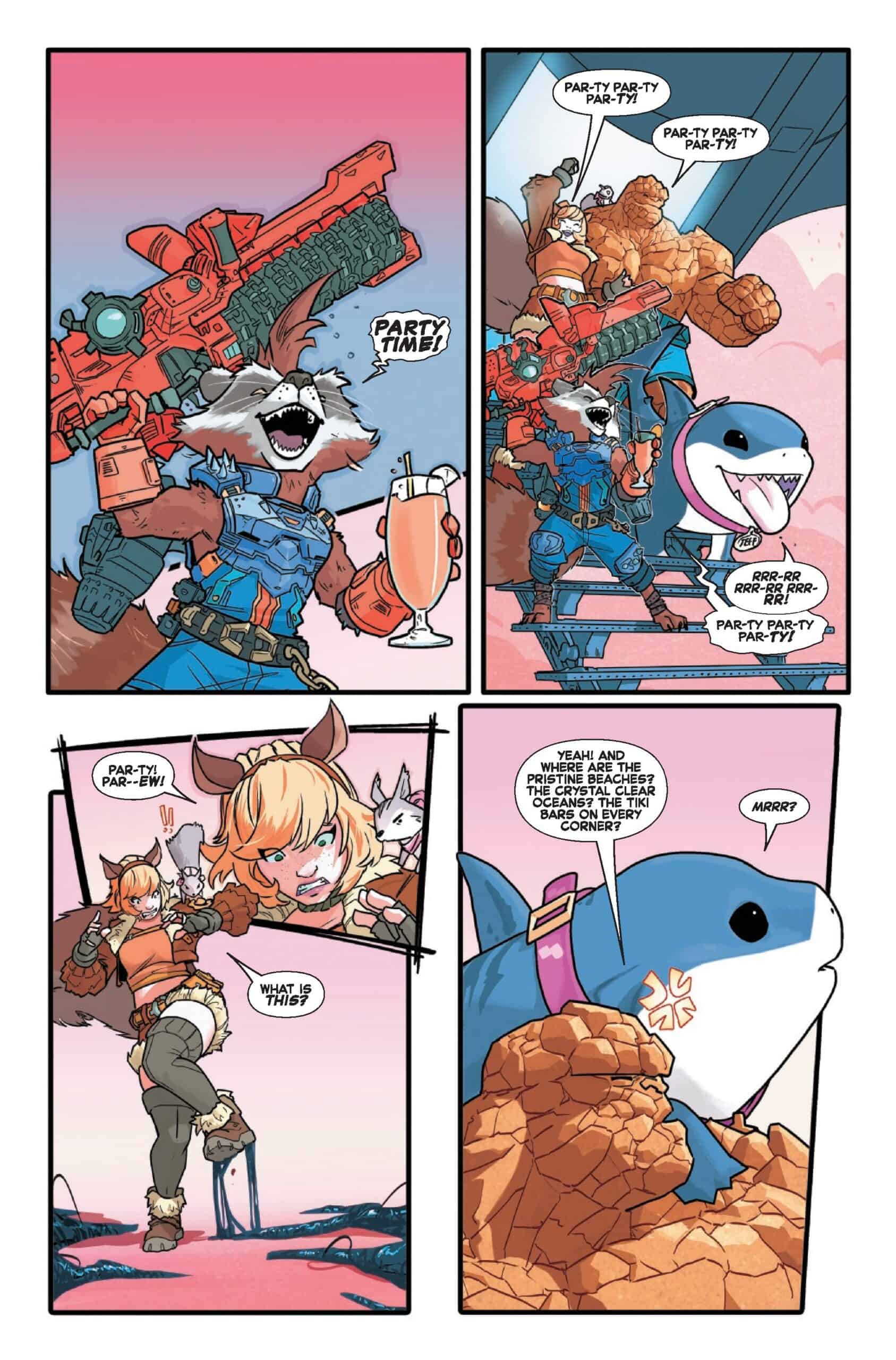 Jeff, Rocket Raccoon, Thing and Squirrel Girl – find themselves on the symbiotic shores of Kylntar, home of the symbiotes in MARVEL RIVALS: KING IN BLACK #1 on shelves and digital platforms October 29, 2025 from