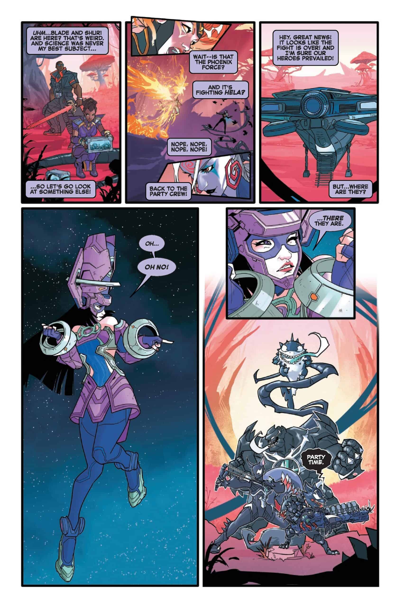 When a galactic vacation goes awry, our beloved heroes – Jeff, Rocket Raccoon, Thing and Squirrel Girl – find themselves on the symbiotic shores of Kylntar, home of the symbiotes! As allies are transformed, their darker halves join the side of the symbiote-bonded Hela, and her growing symbiotic army! Only two heroes are capable of defeating this growing menace: Blade and Phoenix! But with their forces scattered, can the daywalker and the mutant psychic pull their friends out of this Klyntarian nightmare?