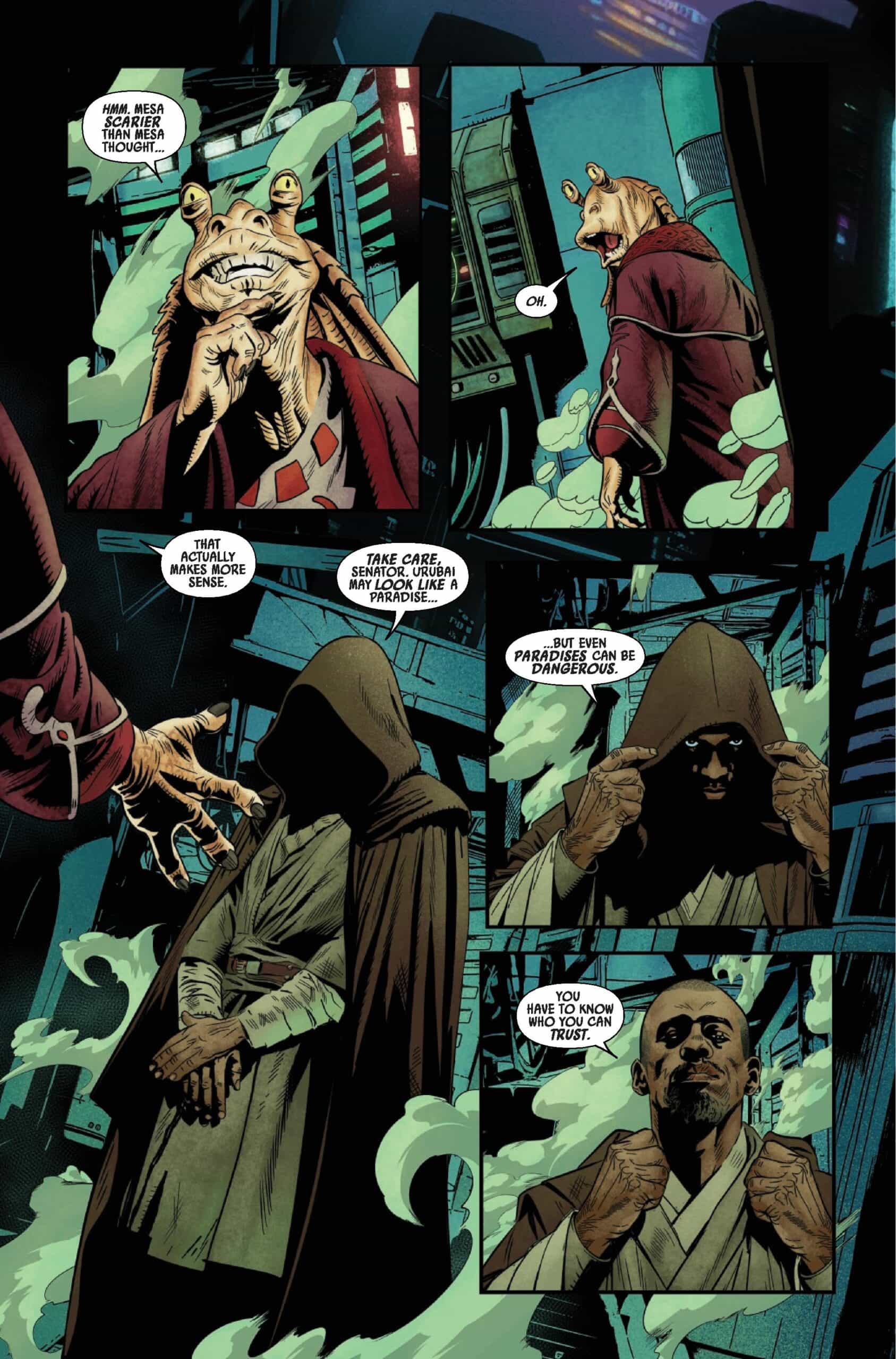 JAR JAR faces the consequences of giving emergency powers to CHANCELLOR PALPATINE. ? Guest-starring fan-favorite JEDI KNIGHT KELLERAN BEQ!