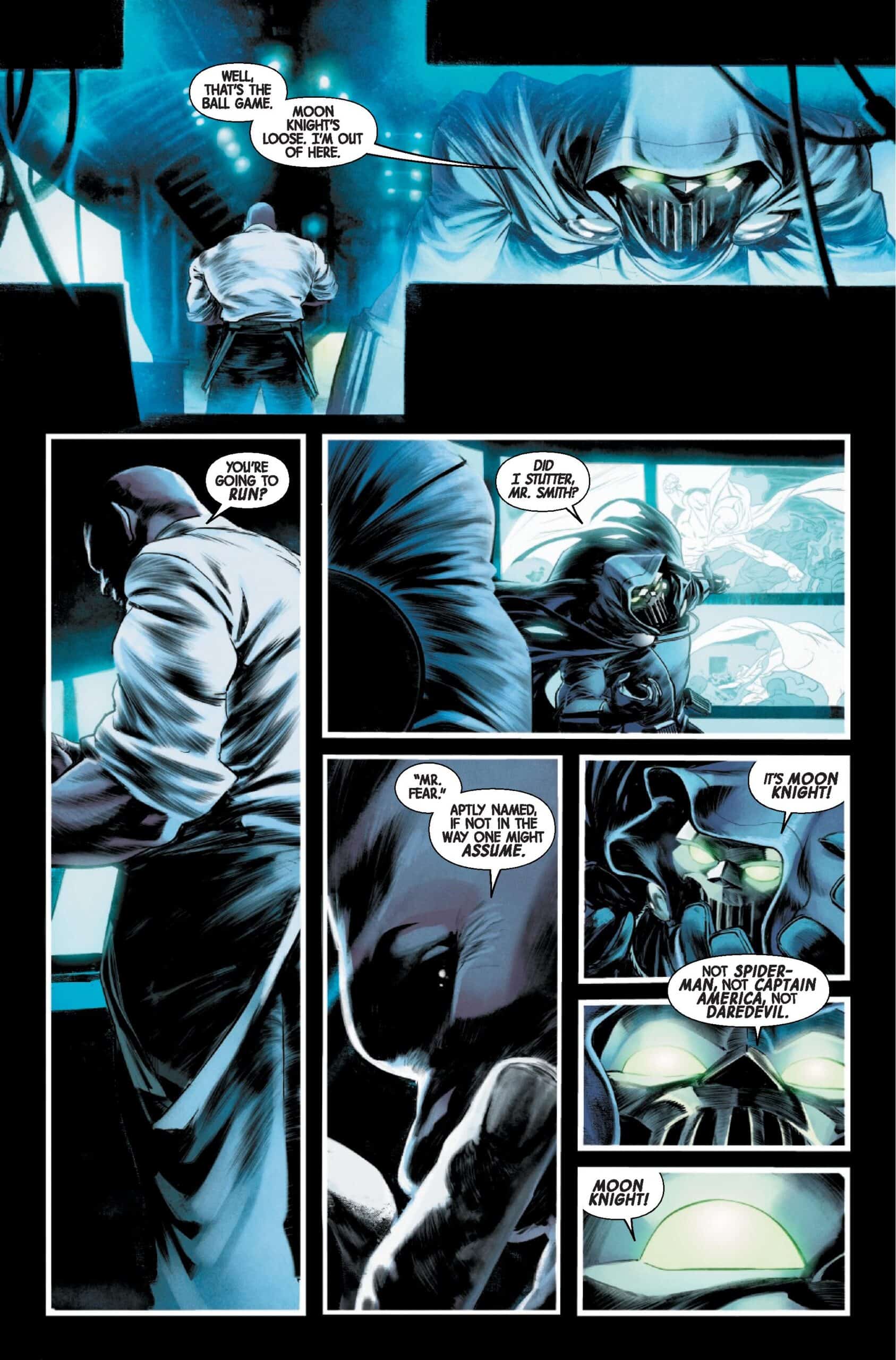 The next chapter continues here as Marc Spector, wounded like a wild animal in a trap, lashes out in Marc Spector: Moon Knight #2