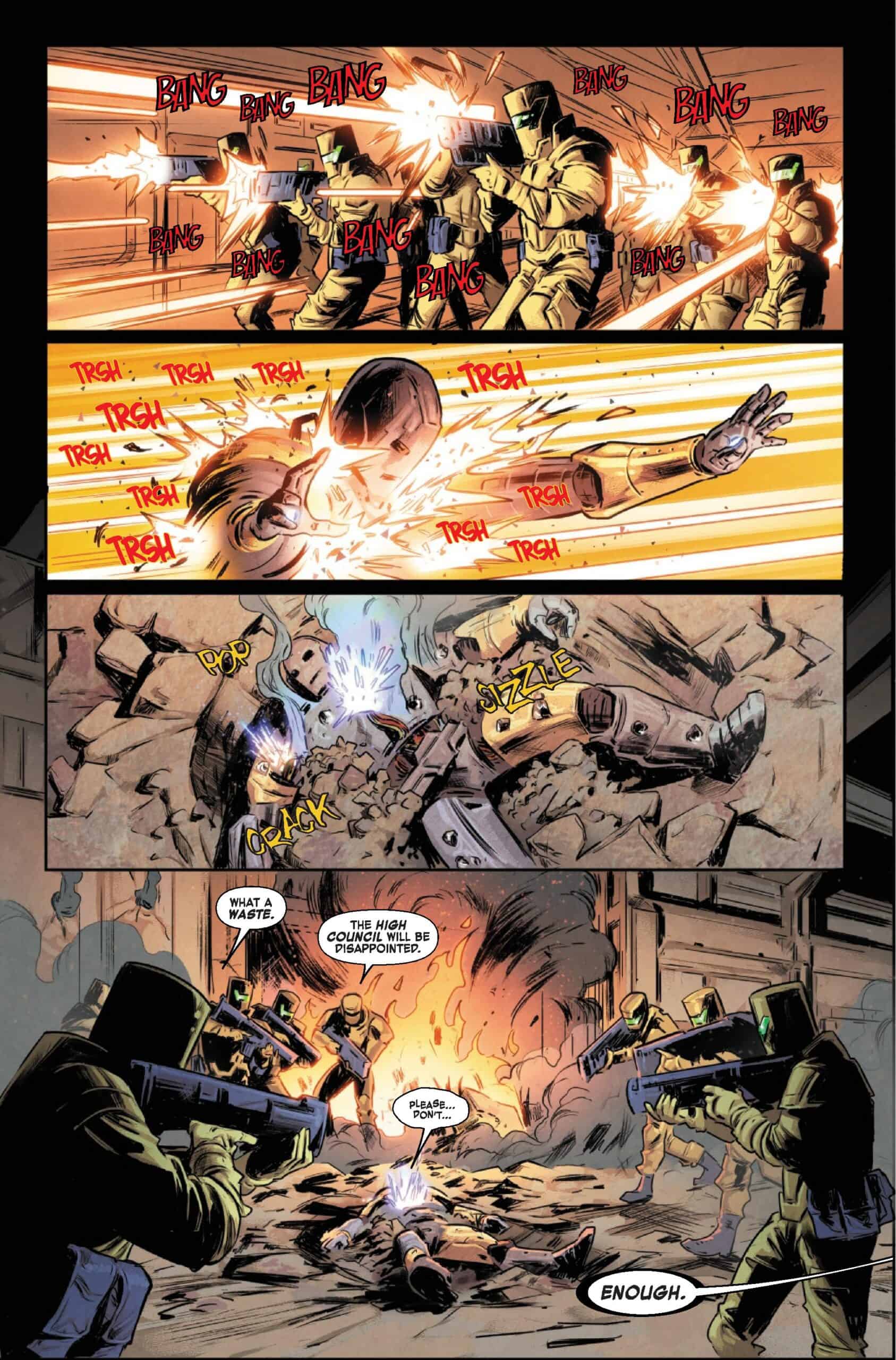 It’s a clash of genius as a new archenemy is born, familiar faces—including a shocking comeback—return, and Marvel’s most innovative super hero shines more brilliantly than ever in Iron Man #1