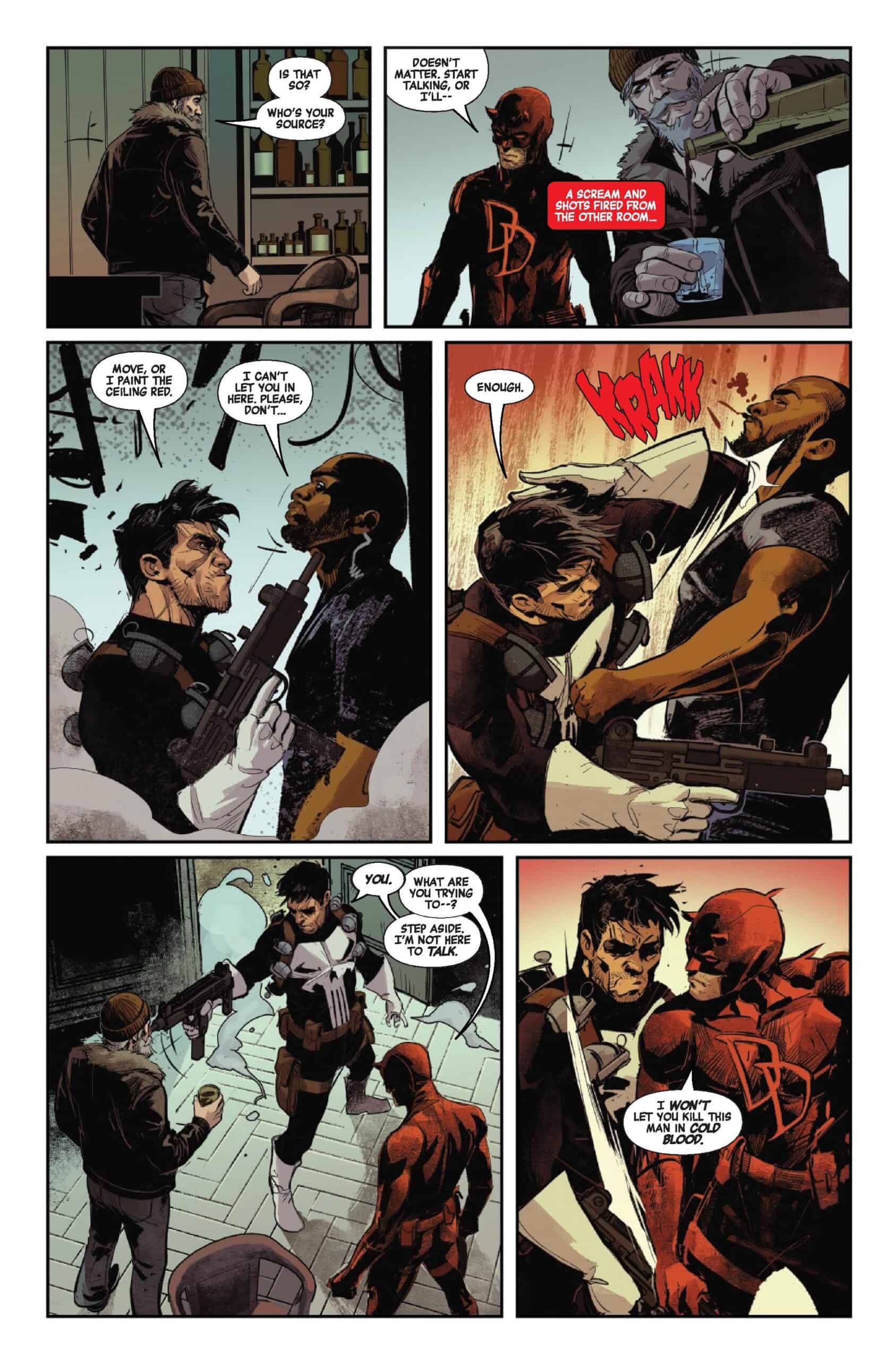 The latest chapter in their history of violent clashes and tense team-ups, Marvel’s most iconic street-level heroes will go head-to-head after Punisher unleashes hell on an emerging criminal empire, forcing Daredevil to put an end to his one-man war before it destroys the city.