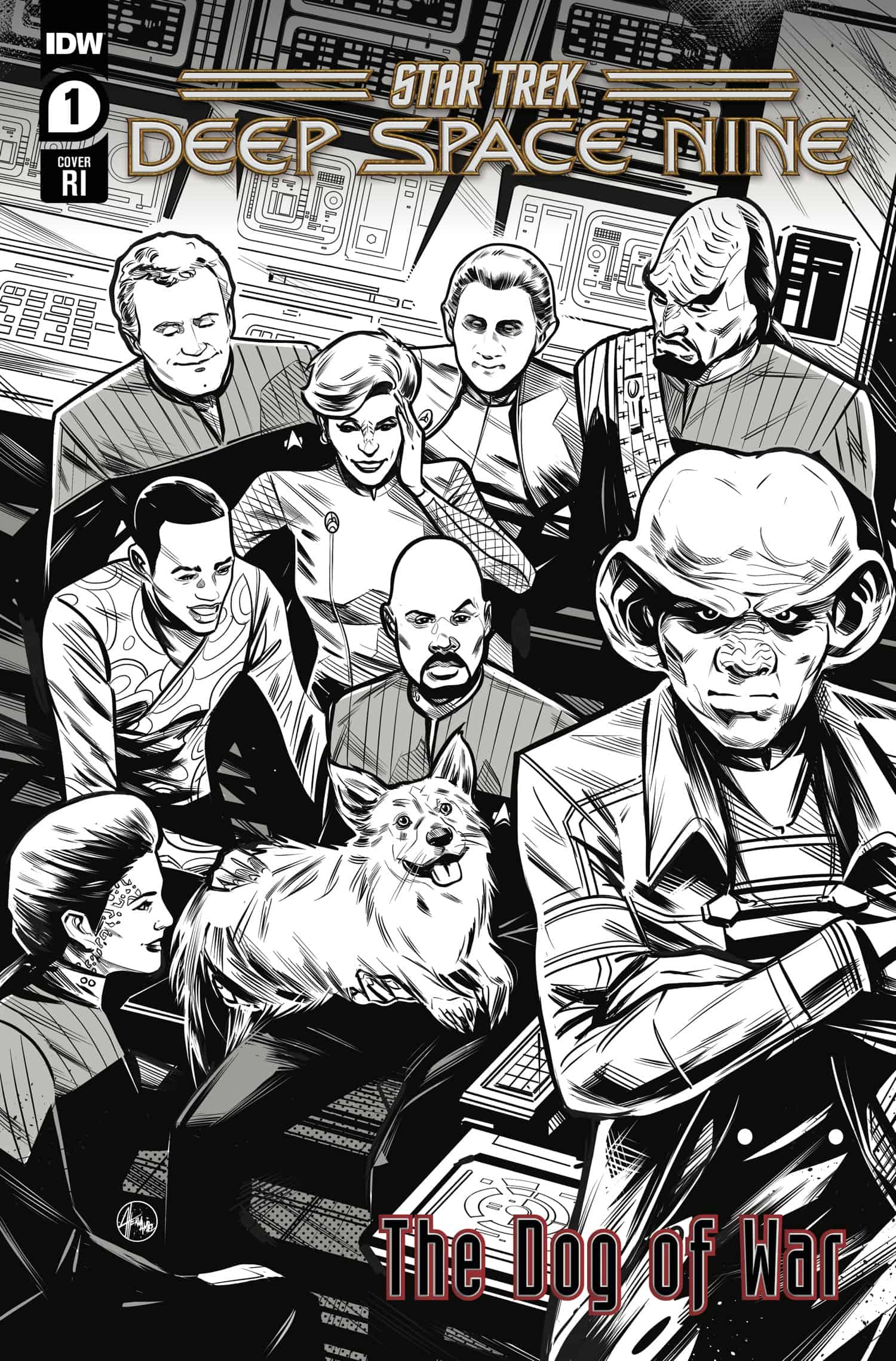 Star Trek: Deep Space Nine—The Dog of War #1 will be available in April with several variant covers for fans and retailers to enjoy, including Cover A by series artist Angel Hernandez; a wraparound Cover B by Chris Fenogolio, featuring the cast of Star Trek: Lower Decks; and Cover C by longtime My Little Pony artist Andy Price (connecting with covers across all five issues to create an amazing diorama of DS9 characters with lookalike canine companions), plus special retailer incentives including a black-and-white variant of Hernandez’ cover and two Deep Space 9 schematics variants with and without trade dress.