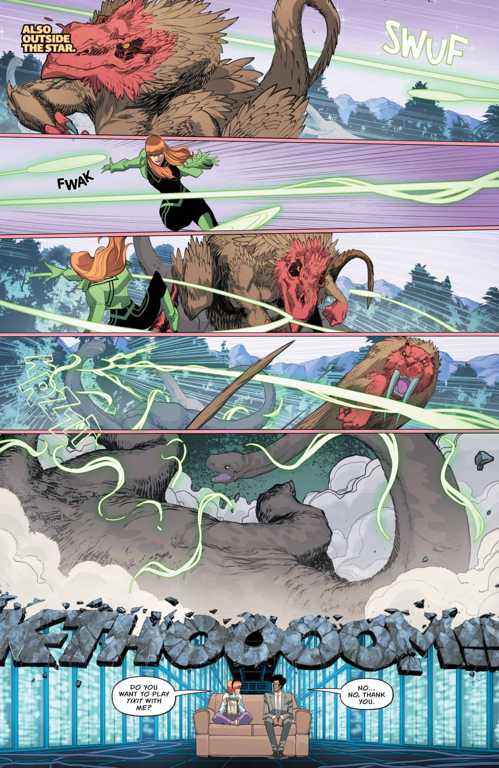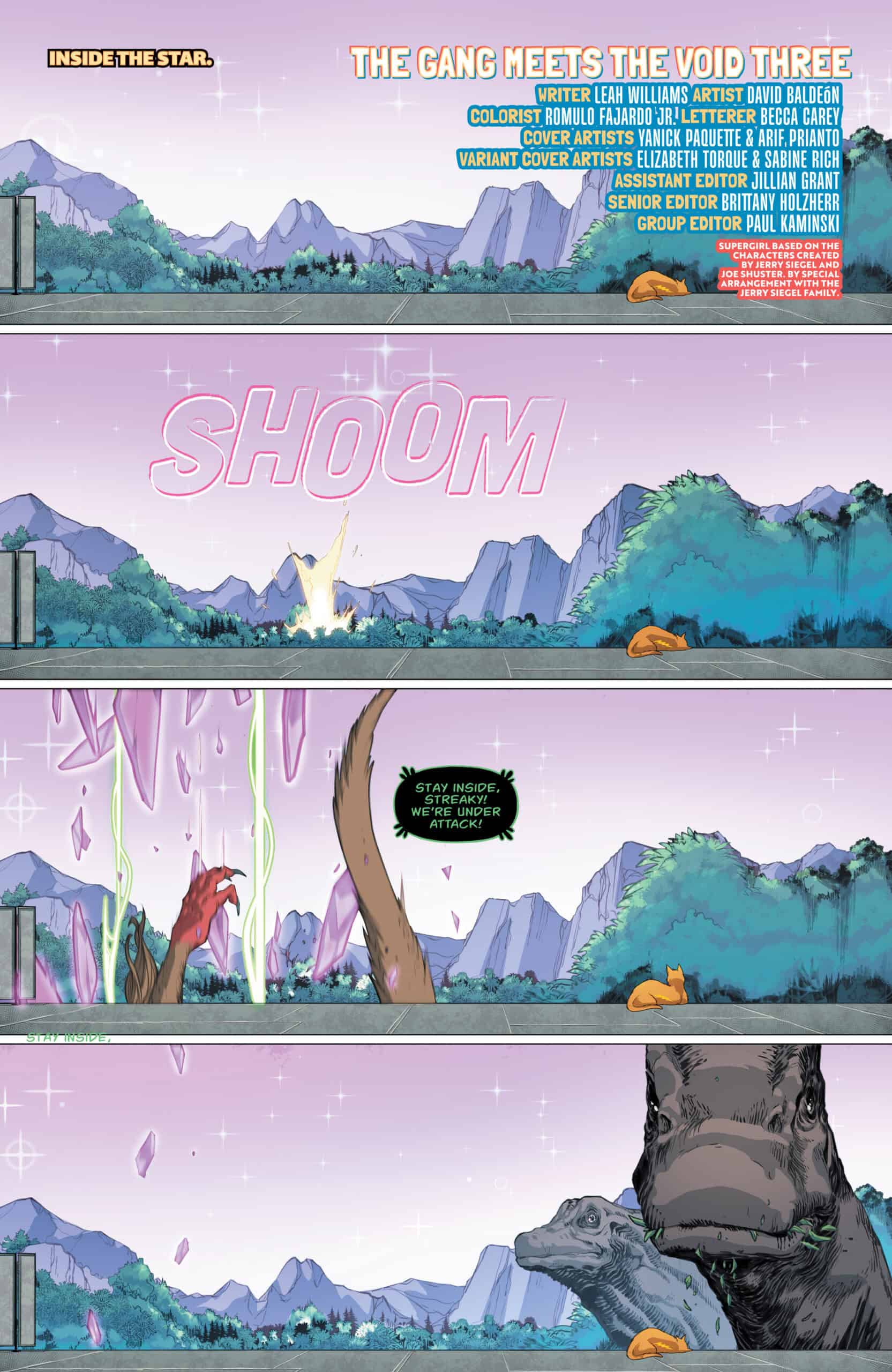 Power Girl, Omen, and Steel are held hostage inside a bubble that’s cut them off from the rest of Metropolis and sent them back to the prehistoric age. The villainous trio responsible wishes to eliminate anyone who dares to interfere with nature, and they won’t stop until our heroes are extinct. But that’s not the only thing Power Girl and her friends have to worry about — the dinosaurs are hungry!