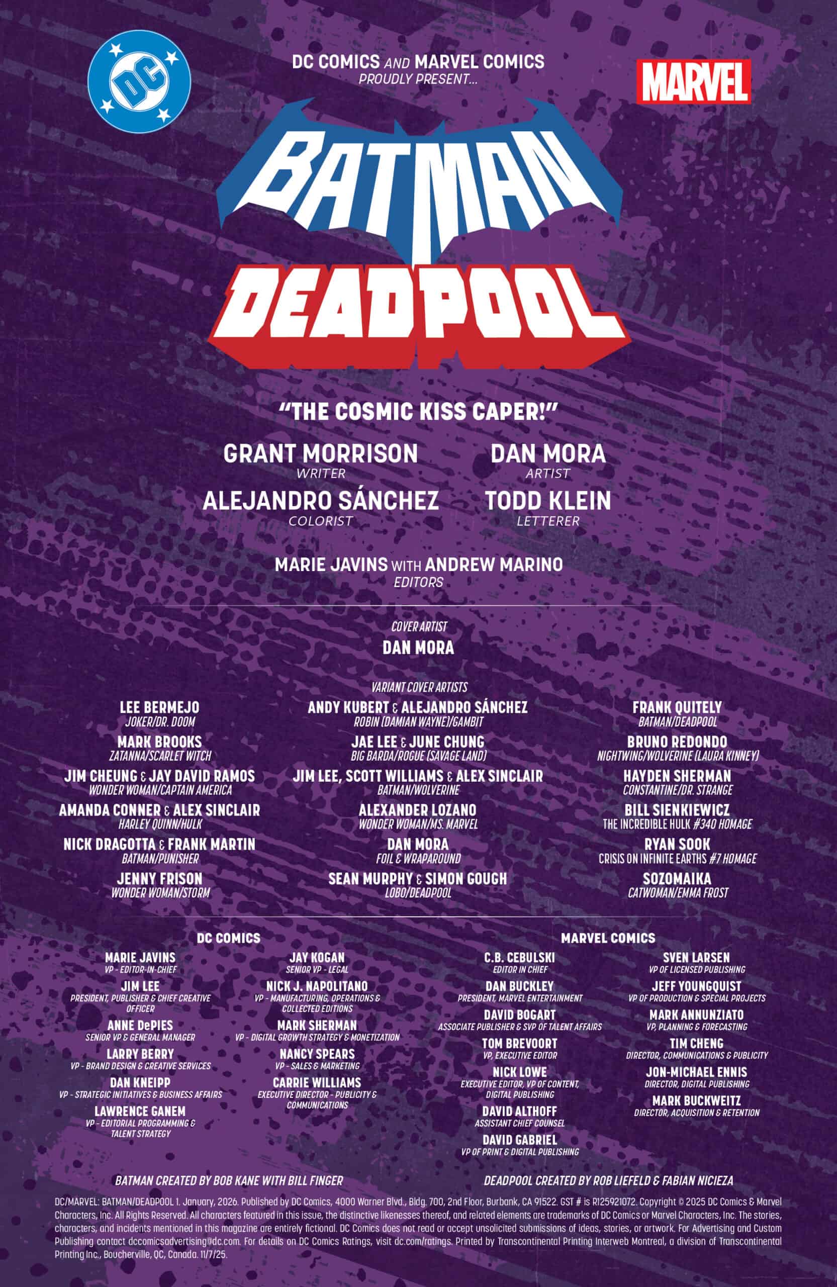Batman/Deadpool #1, a 64-page one-shot crossover comic book with a main cover by Dan Mora, retailing for $7.99 US, hits shelves on Wednesday, November 19, 2025.