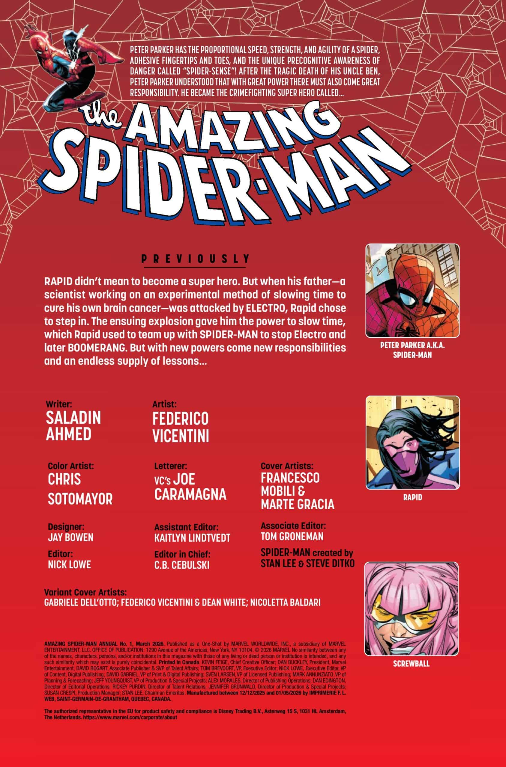 Spidey takes the new hero Rapid under his web in The Amazing Spider-Man 2026 Annual #1