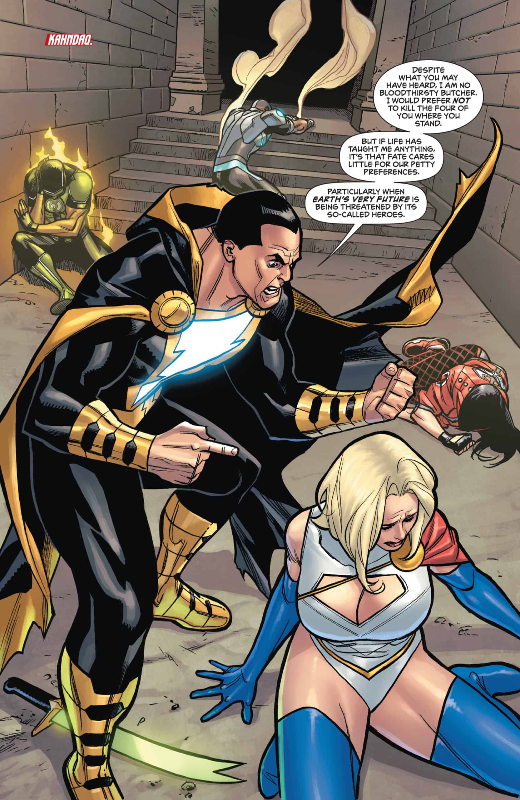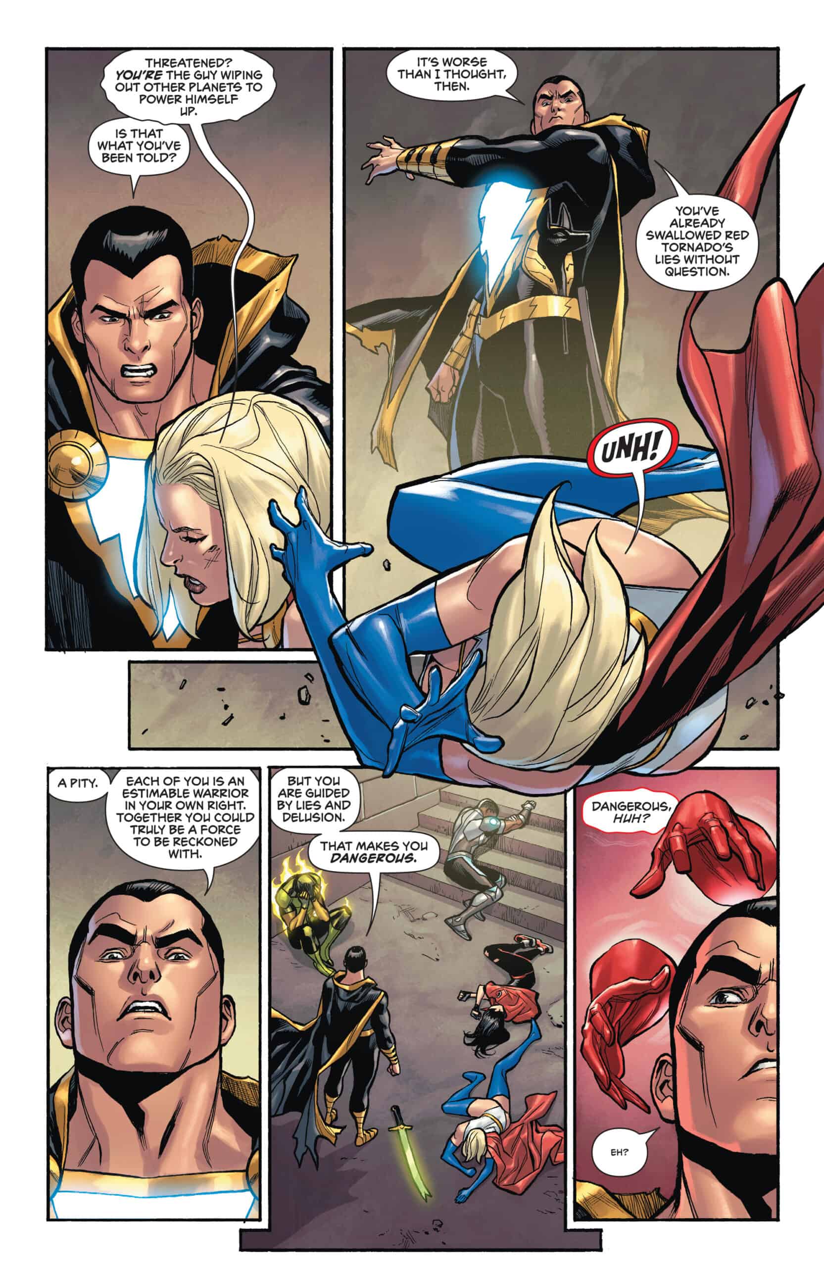 Red Tornado correctly predicted the danger posed by BLACK ADAM! Even with DEADMAN joining the fray, the JLR will have to fight like a team to stand a chance. And while they’re busy, Red Tornado is putting himself to the fullest possible use, which is all any conscious entity can ever hope to do…