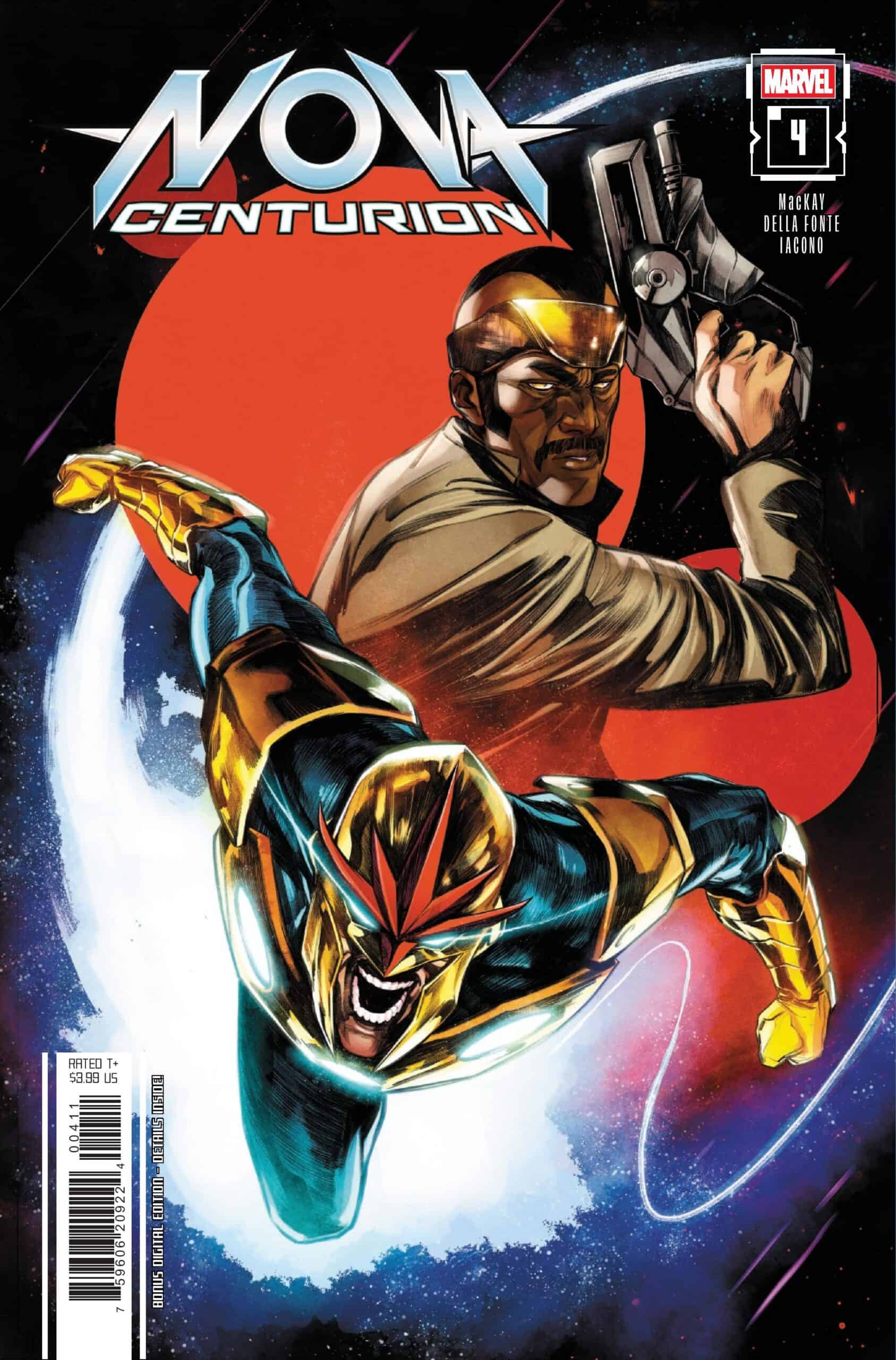 Blockbuster Marvel writer Jed MacKay (X-Men, Avengers) joins the action alongside Álvaro López as they continue to take the helm of the galaxy’s most steadfast defender’s ship gets stolen by dishonorably a discharged ex-Nova Corps member and intergalactic criminal mastermind in Nova: Centurion #4