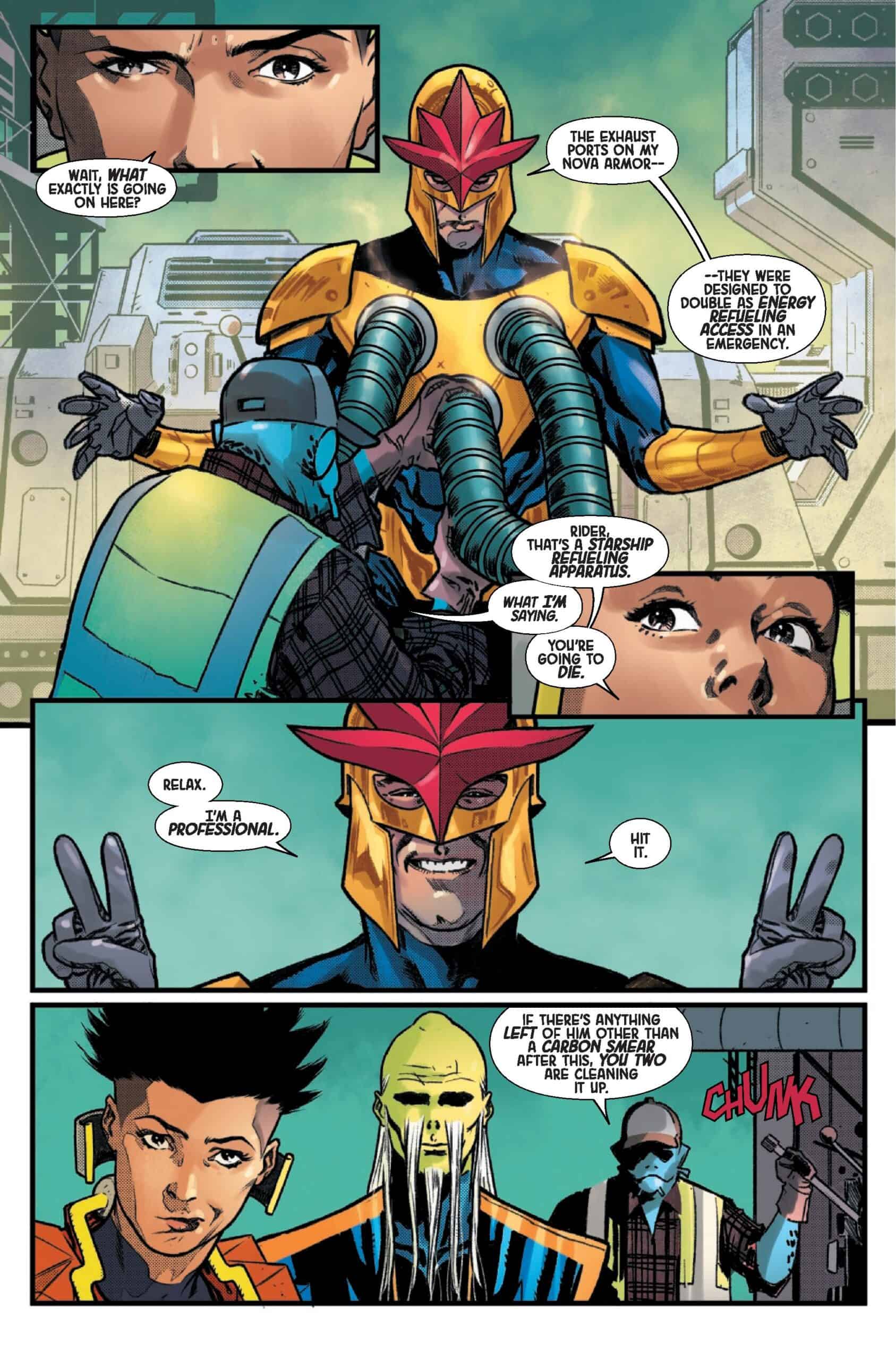 Being NOVA PRIME ain’t easy — between doing good and doing what needs to be done to keep the Worldmind running (which sometimes includes doing good), RICH RIDER barely has time to sleep. But when his ship gets stolen by dishonorably discharged ex-Nova Corps member and intergalactic criminal mastermind EDEN RIXLO, Rich is at risk of not even having a place to lay his head…