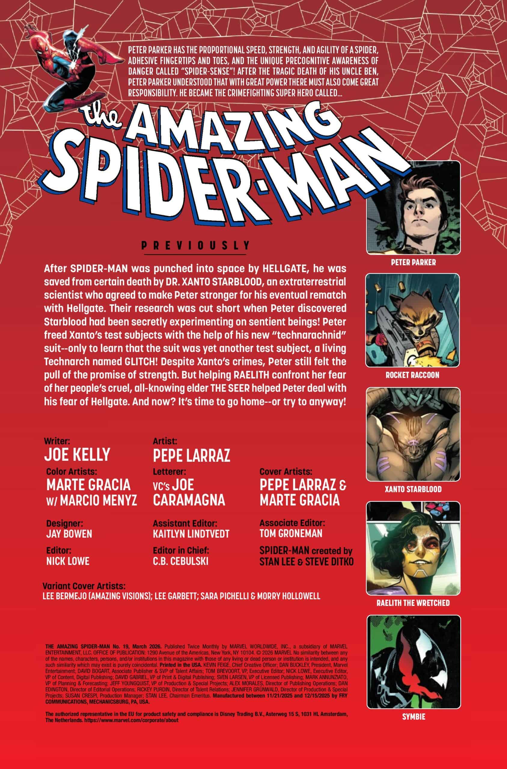 Round Two: The Space-Faring Spidey Vs. Hellgate in Amazing Spider-Man #19 on shelves and digital platforms January 7, 2026, from Marvel Comics