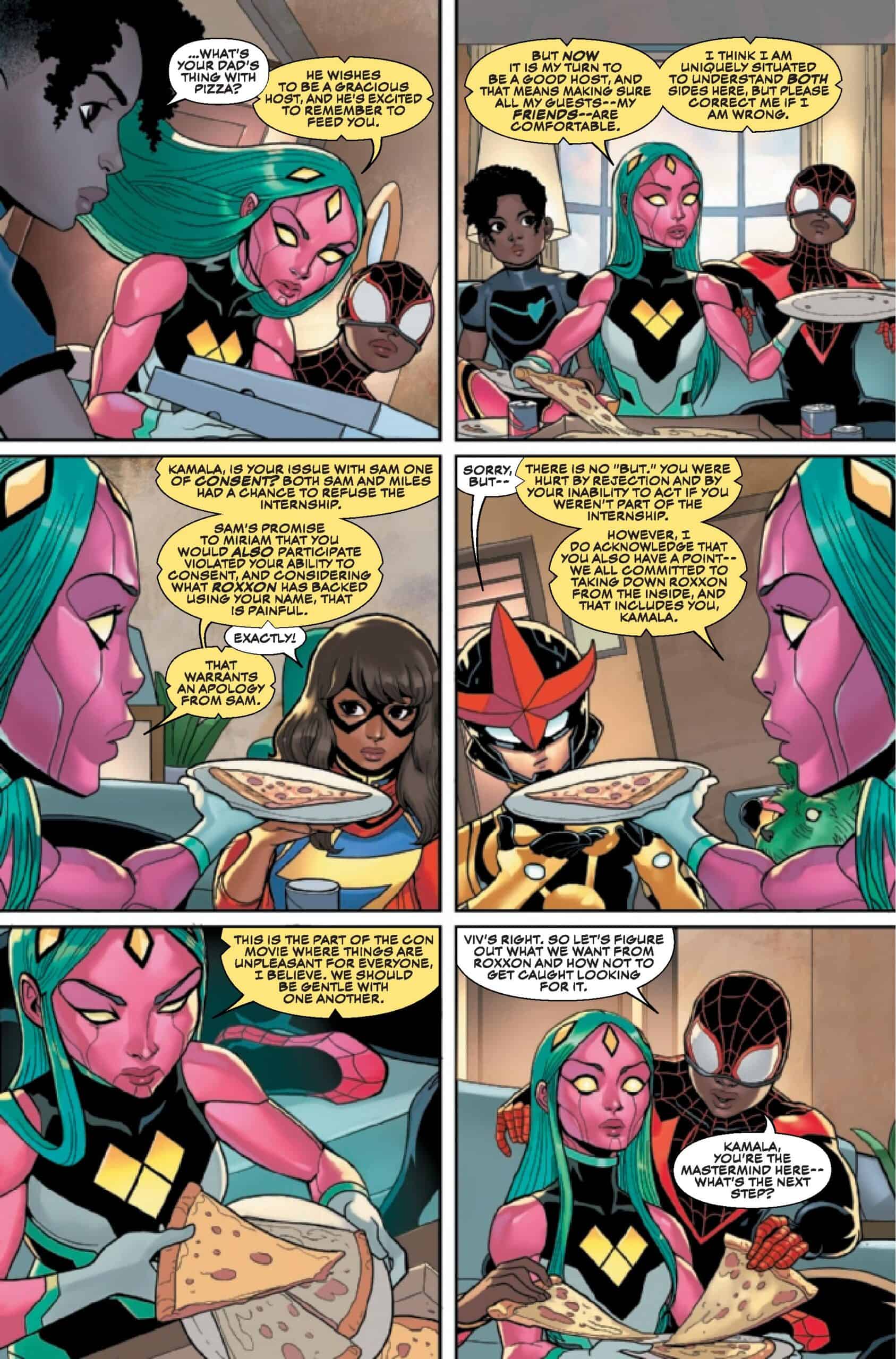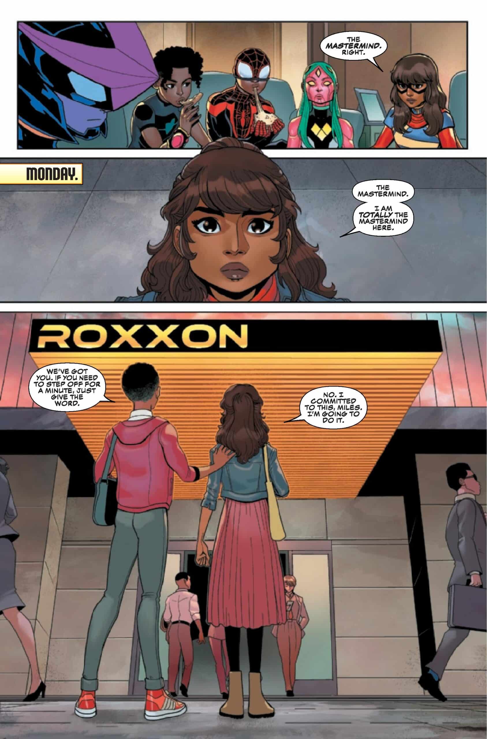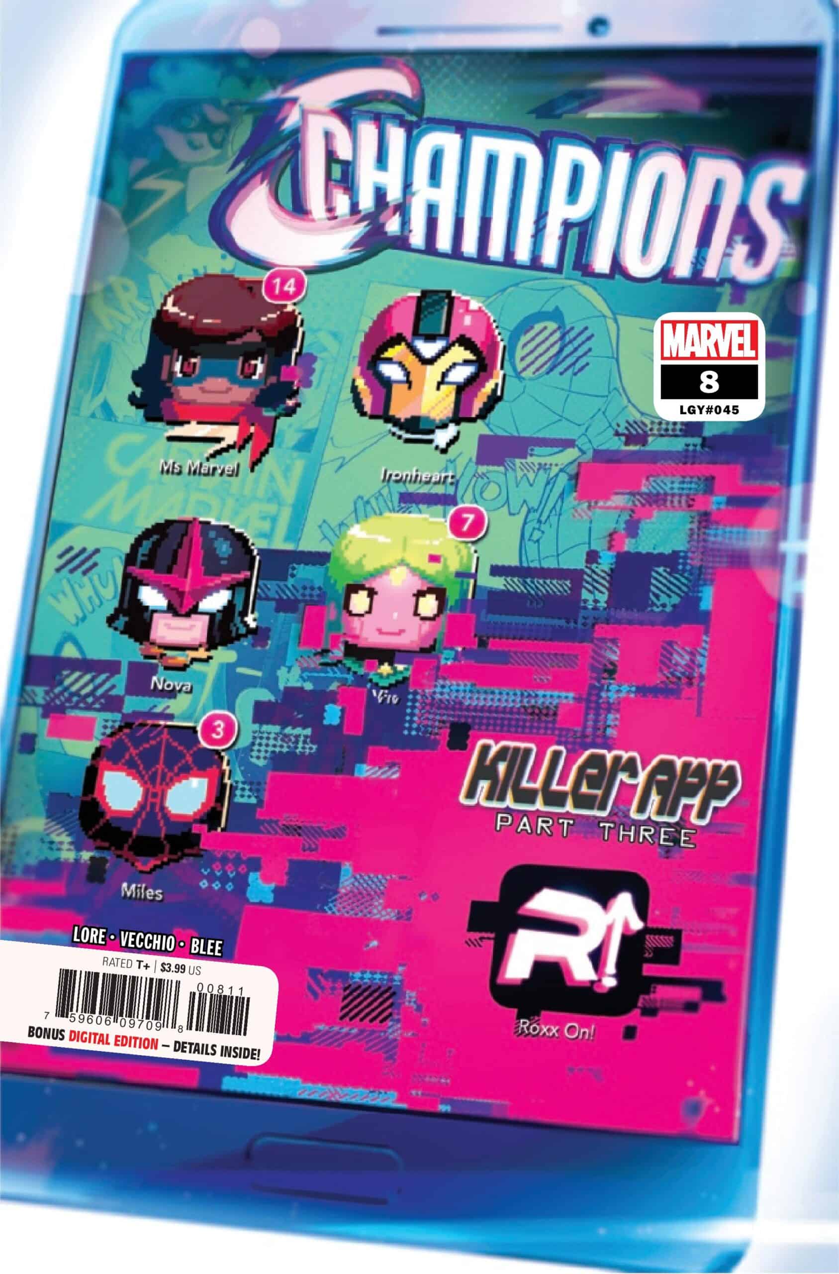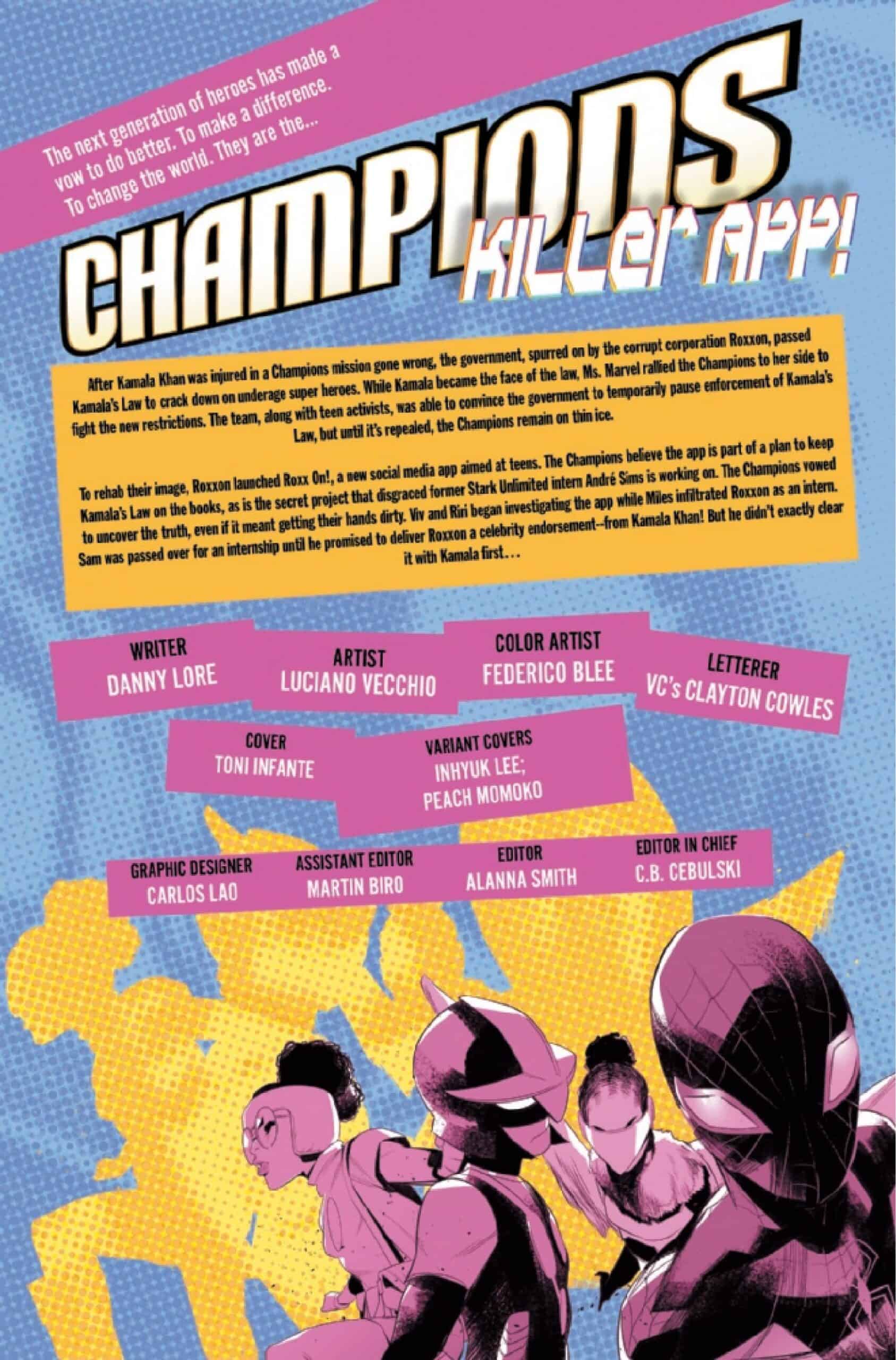 A protest against Kamala’s Law goes south when Roxxon uses its app to lure the crowd into a trap. Can the Champions save the protestors without exposing their moles within Roxxon? And can they figure out Roxxon’s true endgame in time to stop it, or is it already too late?