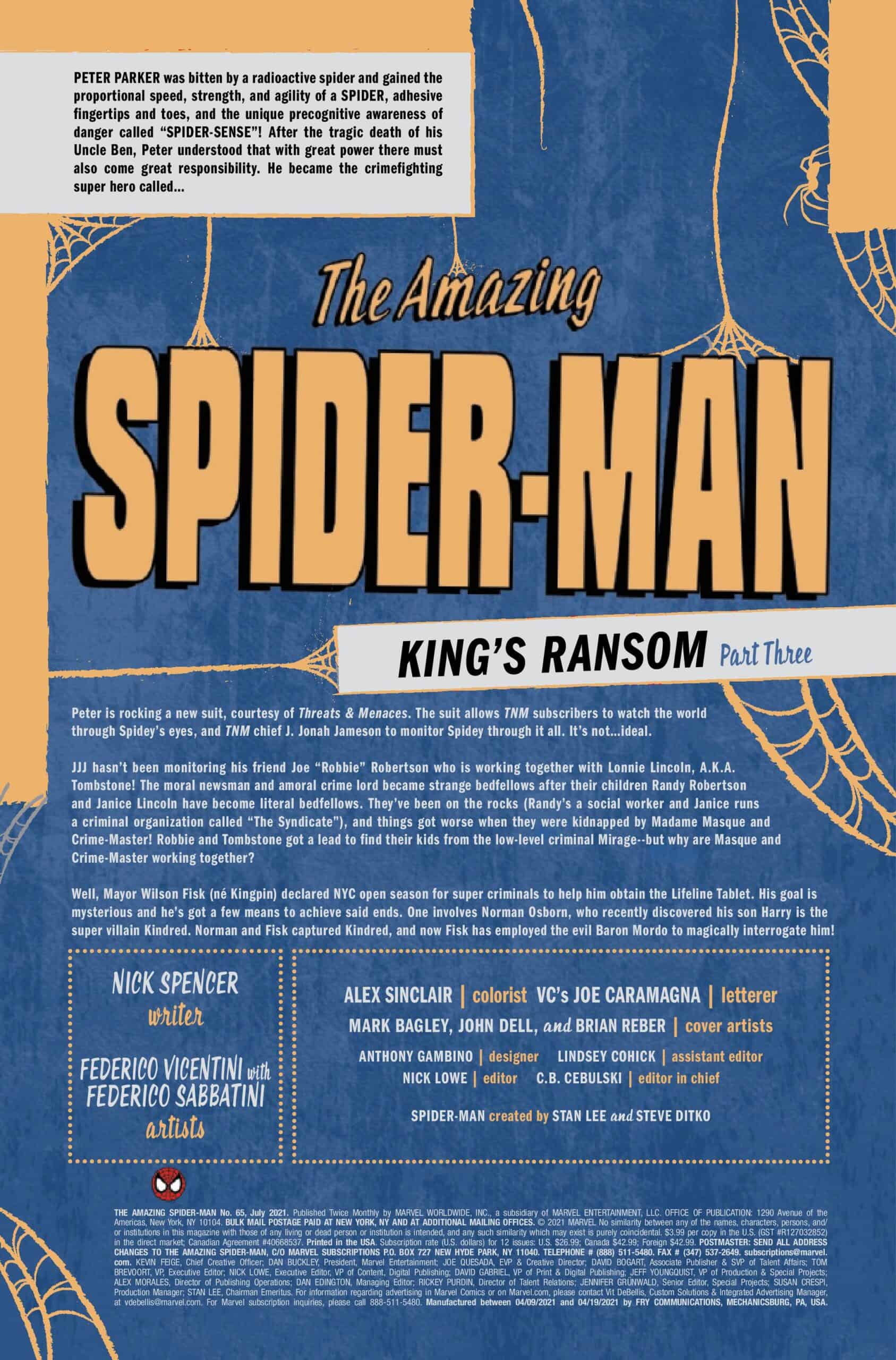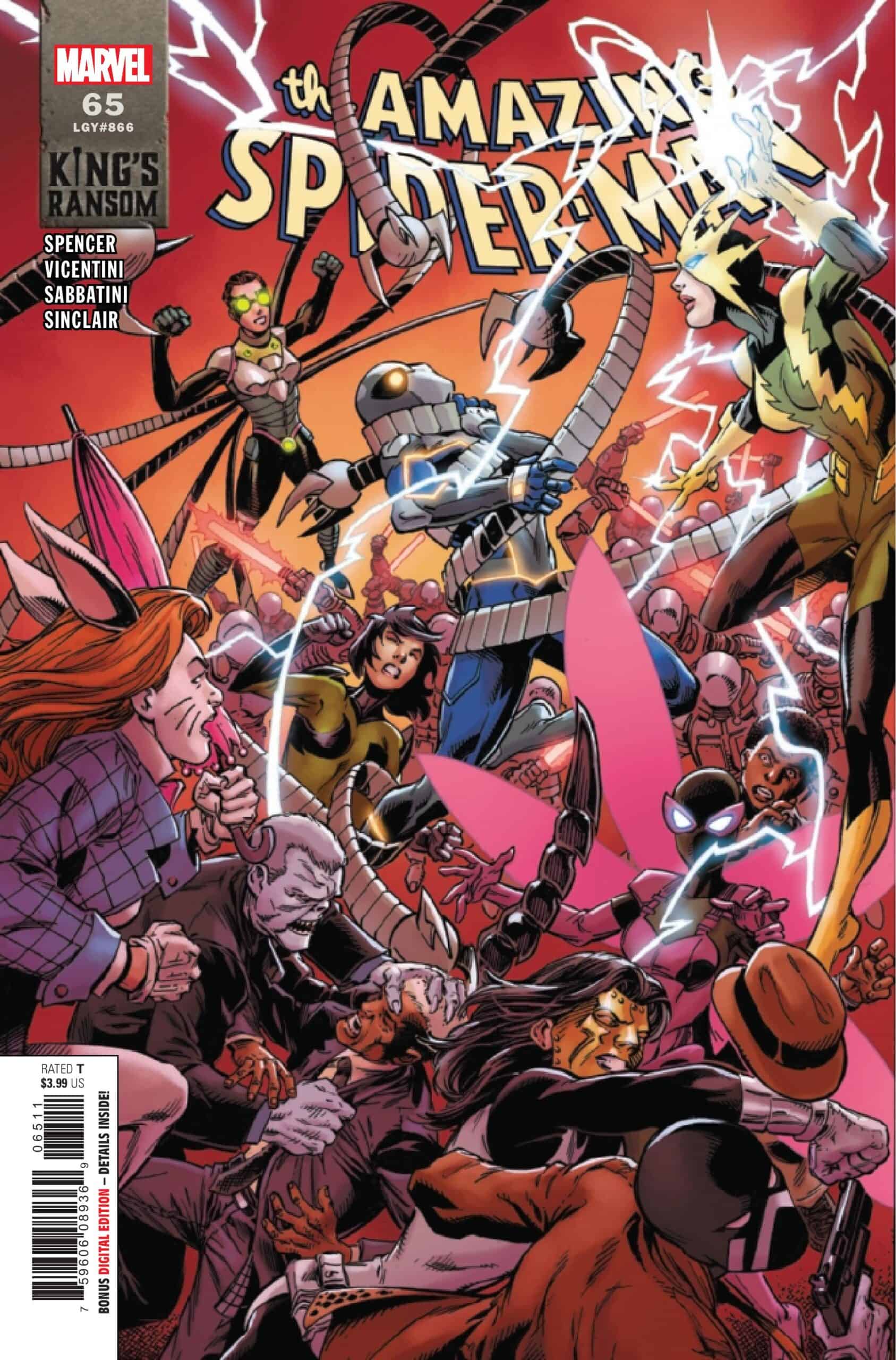 The Amazing Spider-Man #65 is the next installment in The King’s Ransom event as Mayor Fisk declares open season for super-criminals to help him obtain the Lifeline Tablet … Be sure to follow the next part of the story in GIANT-SIZE AMAZING SPIDER-MAN: KING’S RANSOM #1 out May 12th from Marvel Comics.