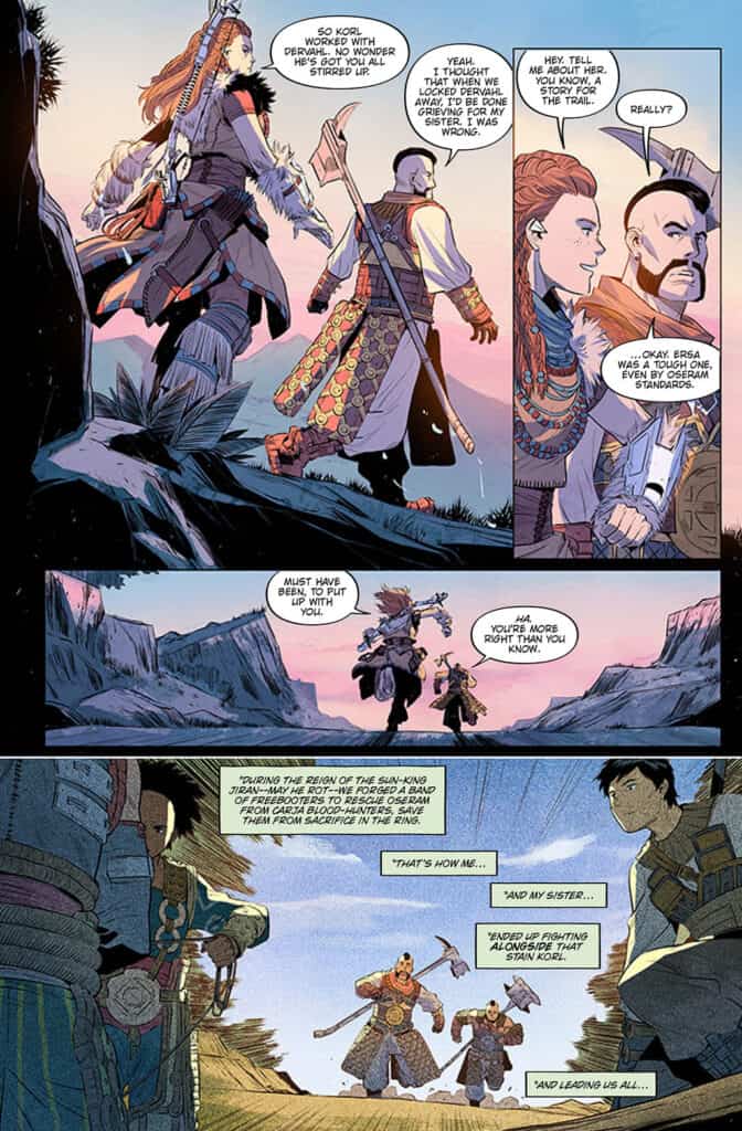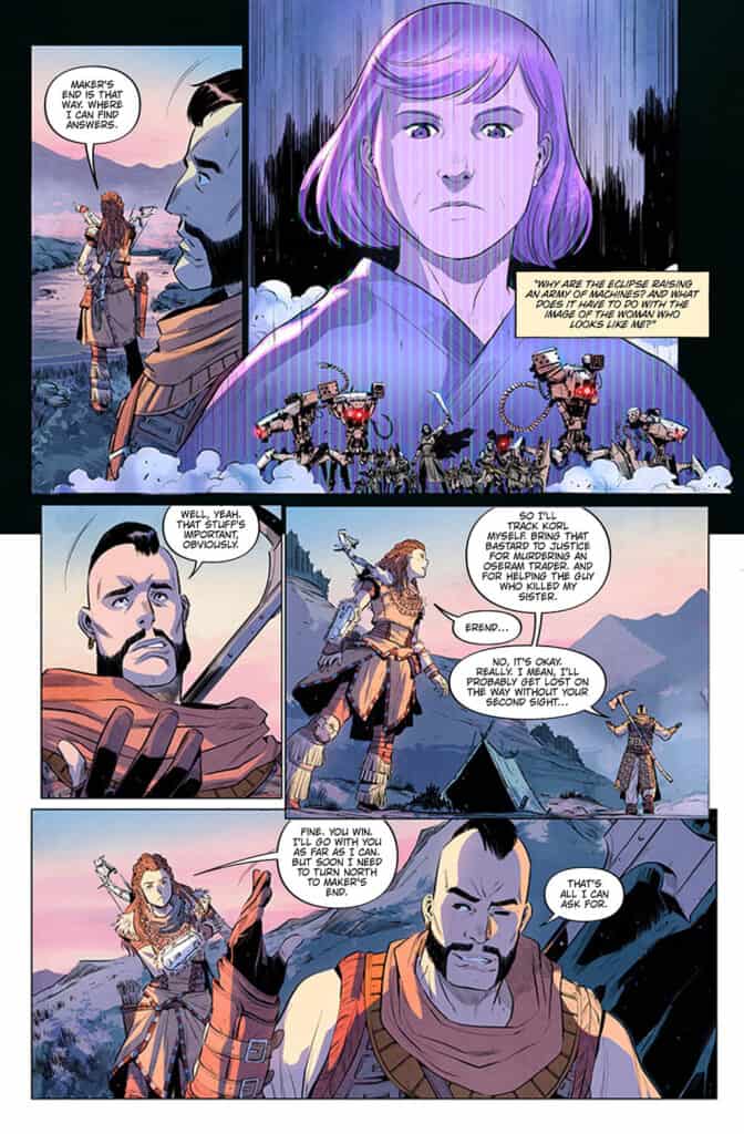 Critically acclaimed original creative team return for a new chapter in the story of Aloy and Erend! Fending off deadly machines, the pair hunt down the killer of a member of the Oseram tribe!