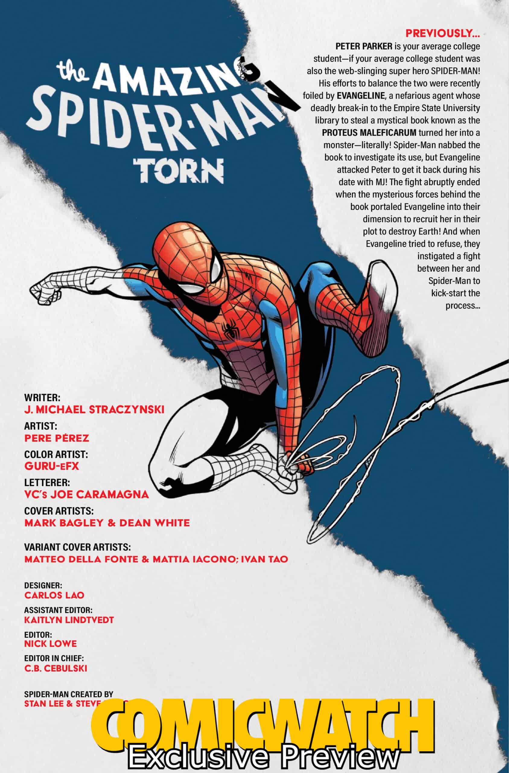 J. Michael Straczynski, one of the most impactful writers in Spider-Man history, returns to the webbed wonder in AMAZING SPIDER-MAN: TORN, a five-issue limited series. Straczynski will be joined by acclaimed artist Pere Pérez (TVA, Venom War: Carnage).