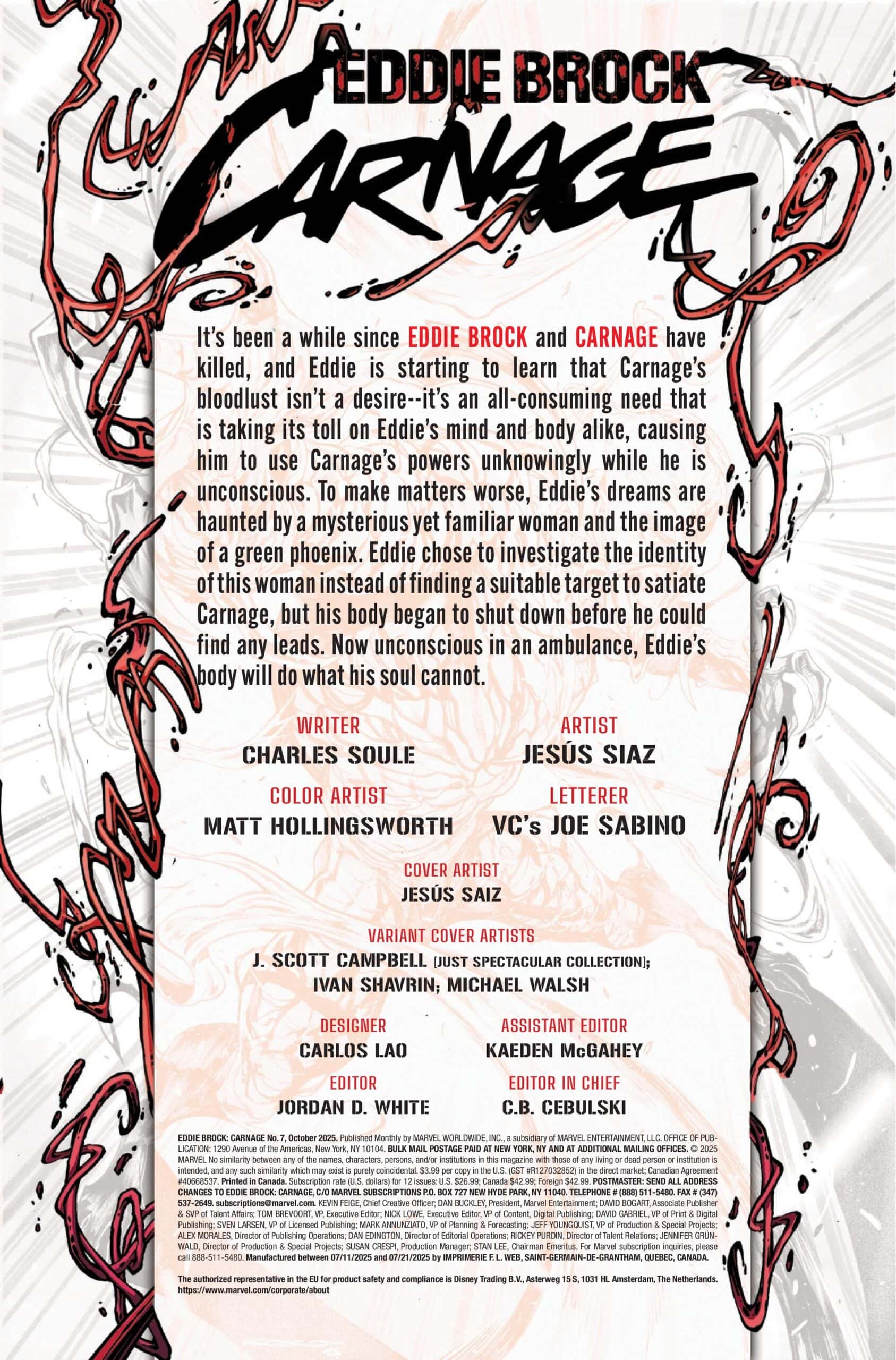 Eddie and Carnage need to kill and fast! With Carnage’s bloodlust consuming him and his health and willpower slipping, will Eddie be able to hold on to his morals, or will he cross the line he drew and take the life of an undeserving civilian? Or perhaps worthy, perfectly despicable, prey will find them instead?