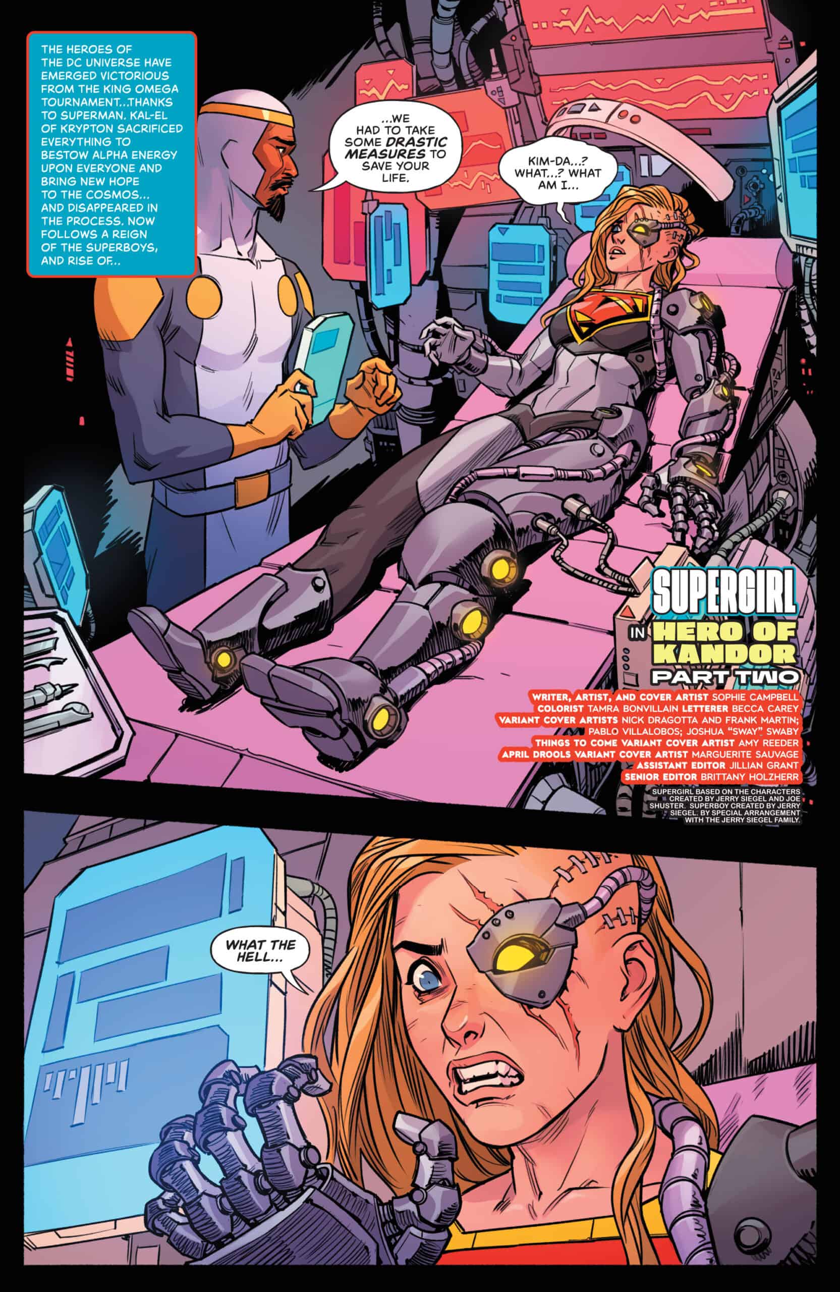 The “Reign of the Superboys” saga begins this week with Action Comics #1096 by Mark Waid and Skylar Patridge, where young Superboy Clark Kent from the past collides with today’s Justice League Unlimited. meawhile here in Supergirl, Sophie Campbell thrusts Kara into the bottled city of Kandor, where she loses her powers and gains a cybernetic upgrade to lead a revolution alongside Conner Kent (Superboy) and a legion of Boy Thunder clones.