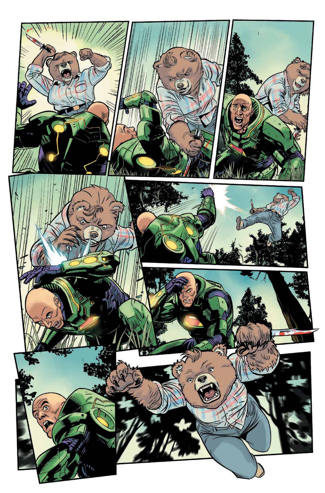“Patrick Horvath created an incredibly complicated and frankly, scary, character with Samantha Strong. I feel lucky to be able to pit this serial-killer bear from IDW’s Beneath the Trees Where Nobody Sees against the greatest criminal mind of our time, Lex Luthor.
