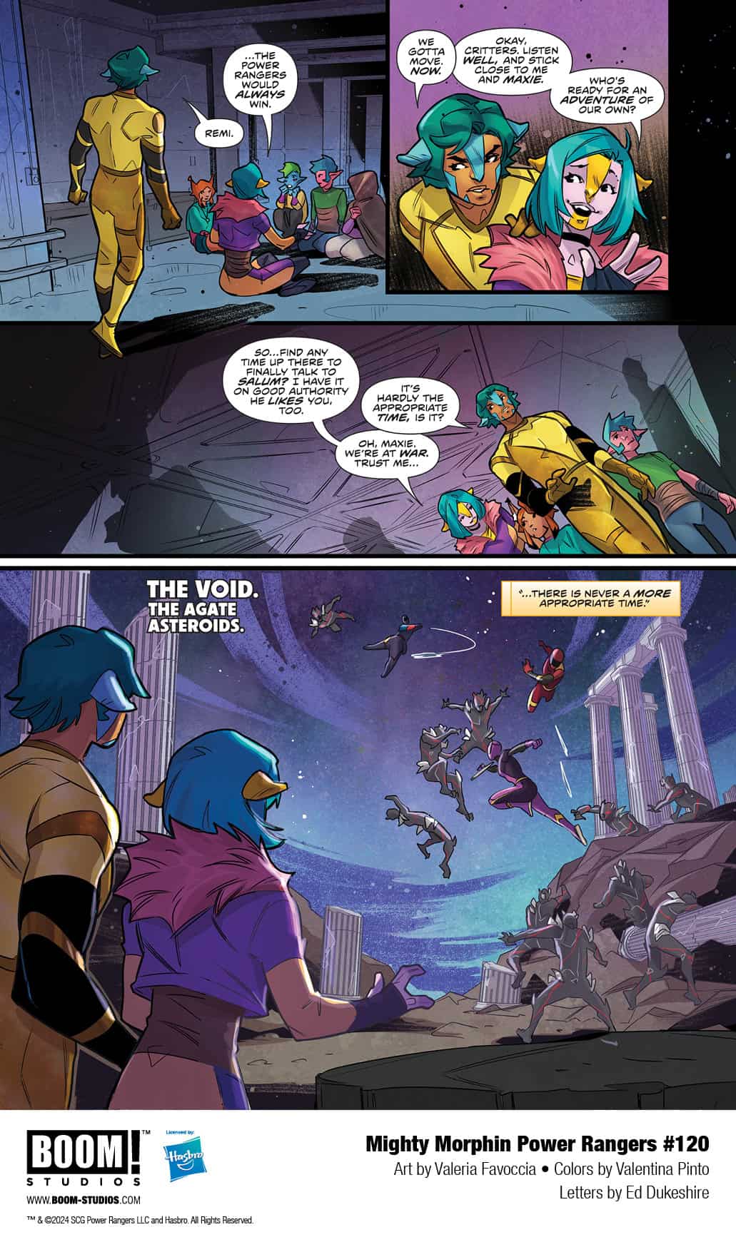 BOOM! Studios revealed the first look at Mighty Morphin Power Rangers #120 which continues the plot of the Darkest Hour event. Setting up the ending of this era of the Rangers, the first look promises to push the Solar Ranger story forward. The issue features writing by Melissa Flores, artist Valeria Favoccia, colorist Valentina Pinto, and letterer Ed Dukeshire, leading into the finale of the series, Mighty Morphin Power Rangers: Darkest Hour #1.