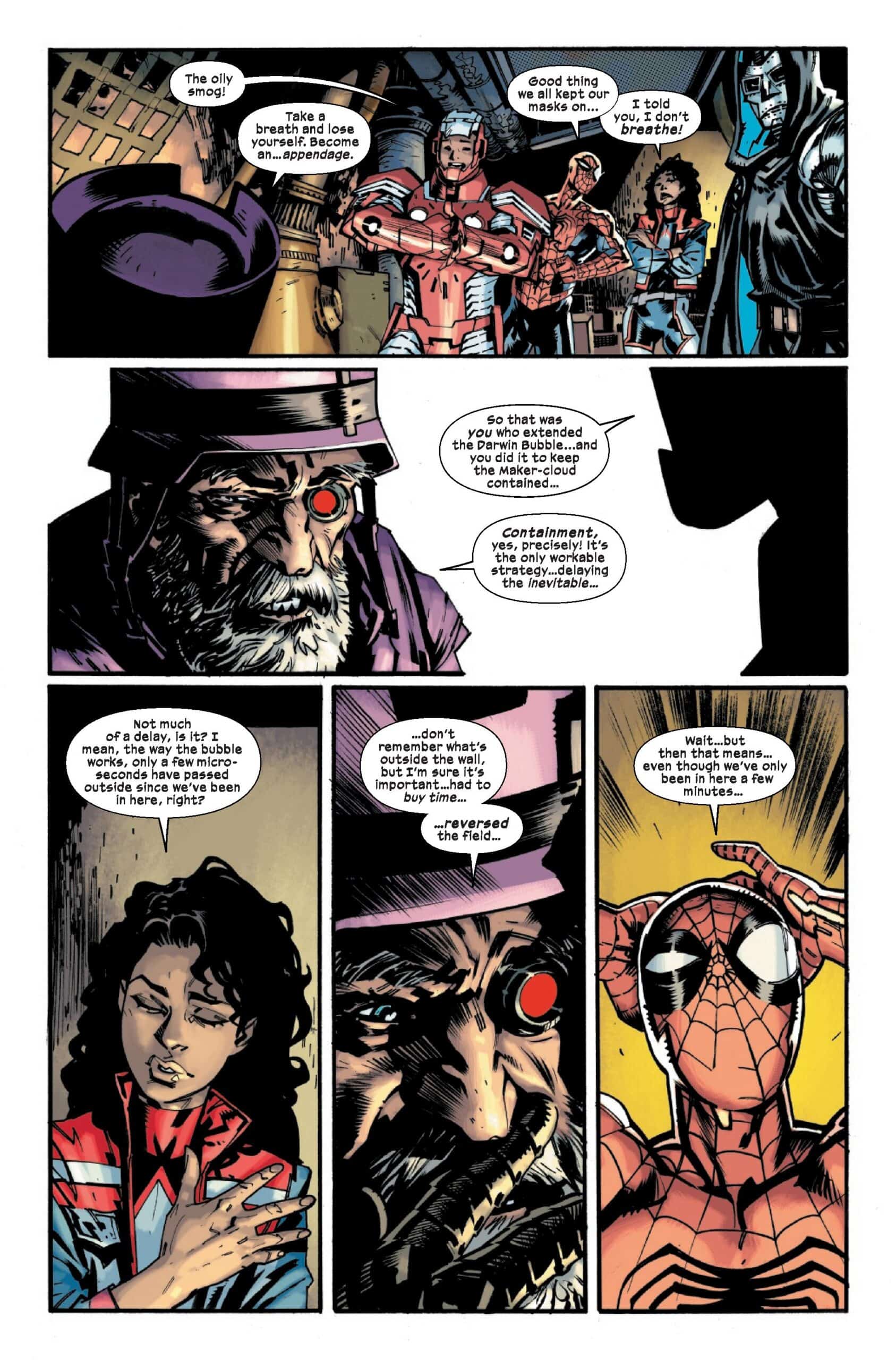 The heroes of the Ultimate Universe — including Spider-Man, America Chavez, Killmonger and Doom — desperately search for a way to stop the Maker.
