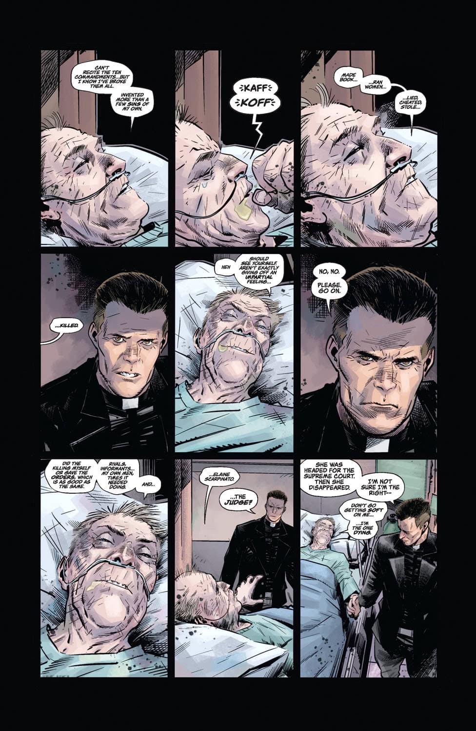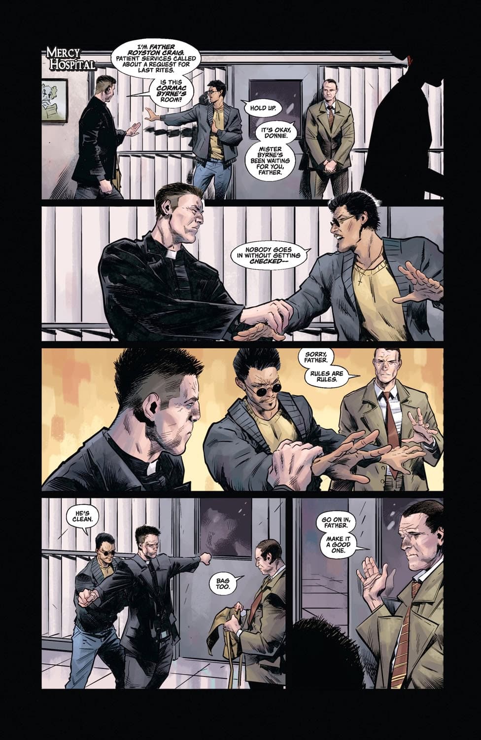 …until the next morning. When Byrne makes a miraculous medical recovery. No longer at death’s door, Byrne is quick to return to his old ways. It’s business as usual and he’s got loose ends to tie up. First things first: KILL THE PRIEST who now knows where all the bodies are buried.
