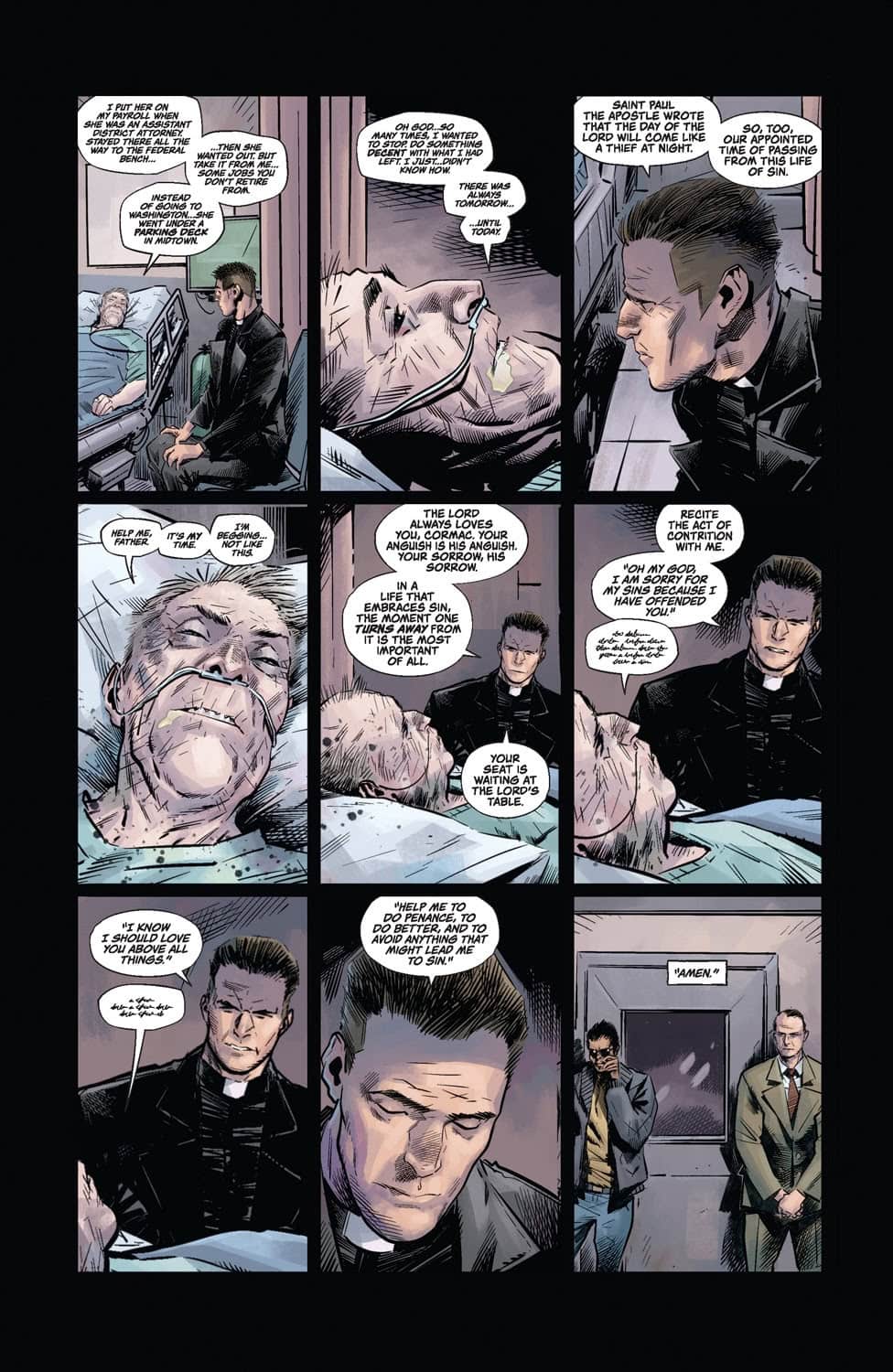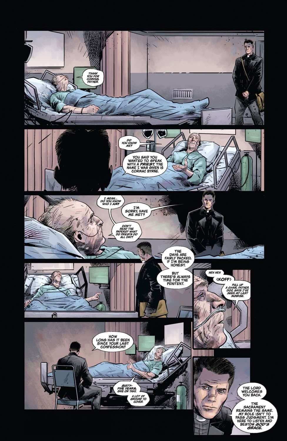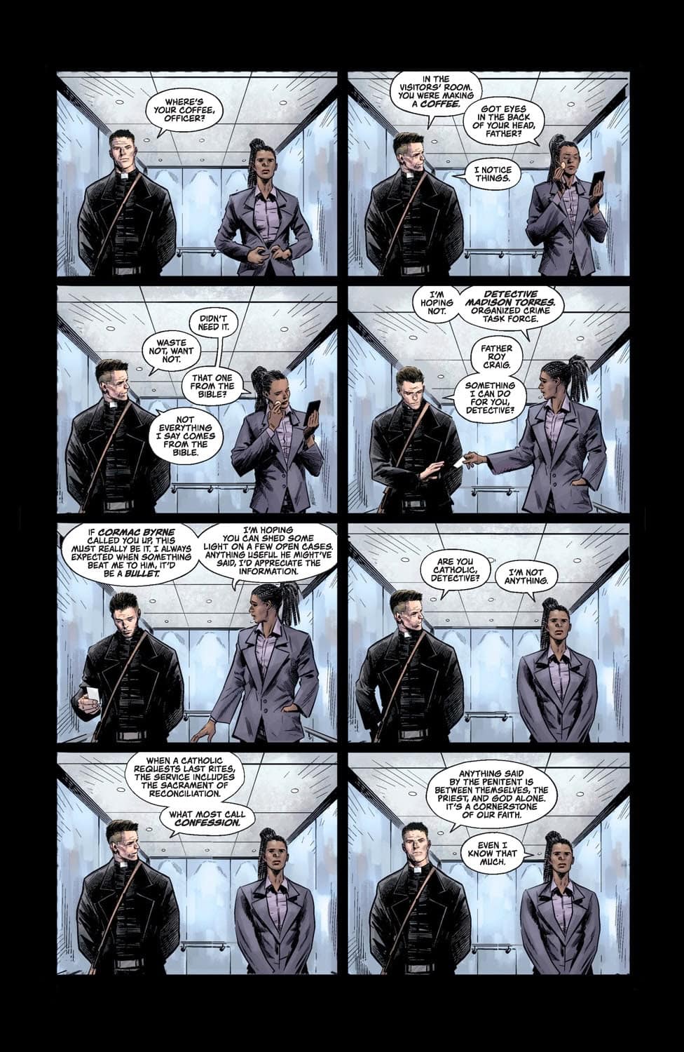 One day, he’s called to give these sacraments to Cormac Byrne, who doctors say won’t last the night. Byrne, like many others, has turned to God only at the end; he hasn’t been to church in decades. Father Roy is eager to hear his confession, but what starts as petty crime from a lifetime ago quickly becomes a horrifying litany of gangland violence and killings. Cormac Byrne is no ordinary man. He is, in fact, the head of the Irish mafia. God offers forgiveness to all who truly repent, and Father Roy completes his task by absolving Byrne of his mortal sins, leaving the man to die at peace…