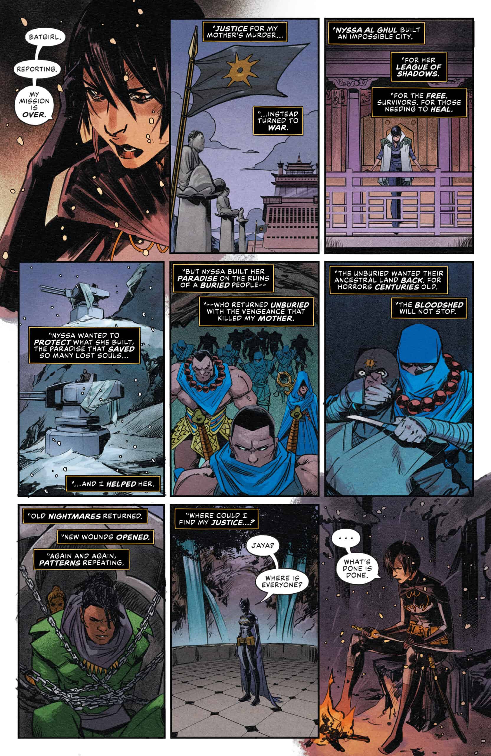 Hell has arrived at the heavenly gates of Samsara. Will the League of Shadows save their paradise, or will the Unburied reclaim their stolen land? And within it all, who will Batgirl become in the face of so much death?