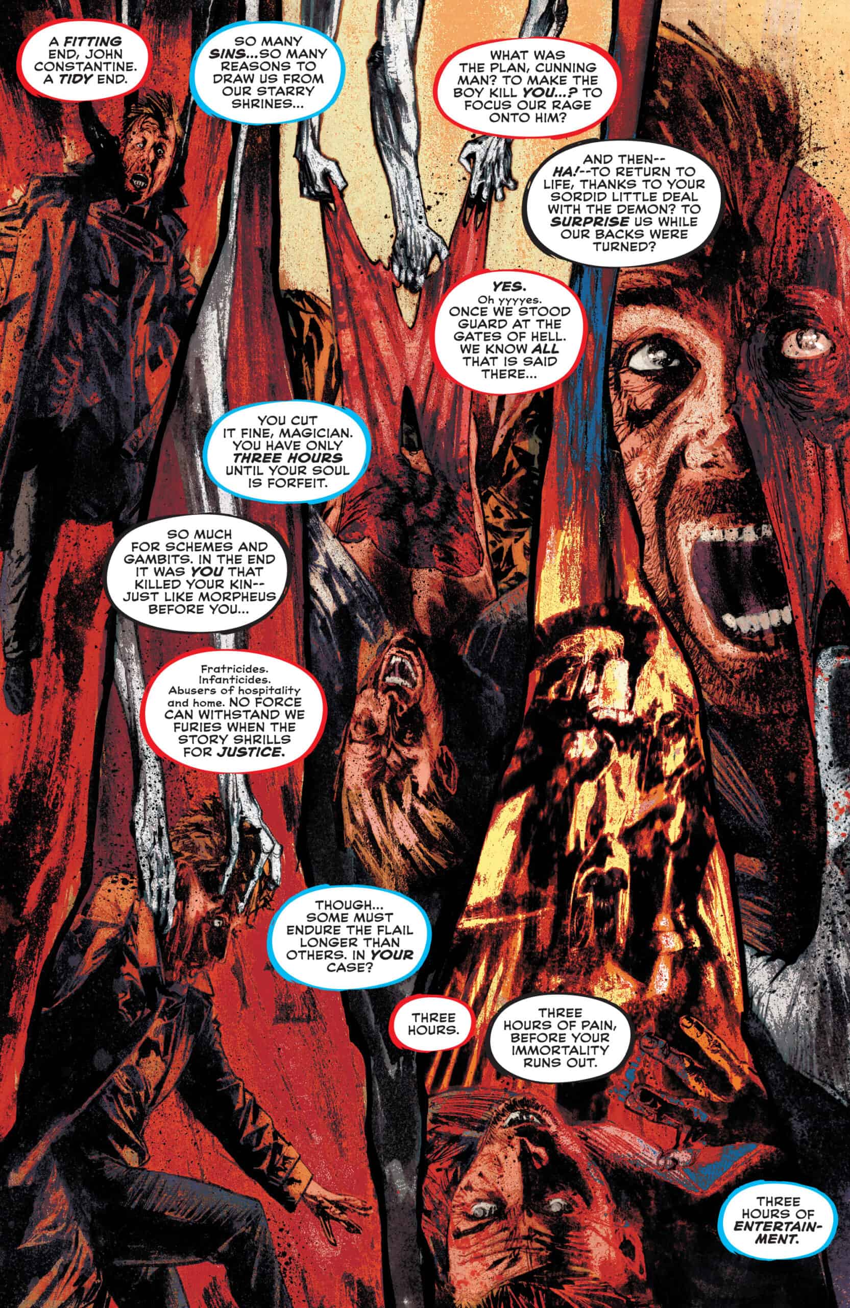 It’s the end of the long road across America for John Constantine…and it could be the end for more than just his quest to take Dream’s power out of the wrong hands! Constantine may have cheated Death before, but in the end, she always gets her man…