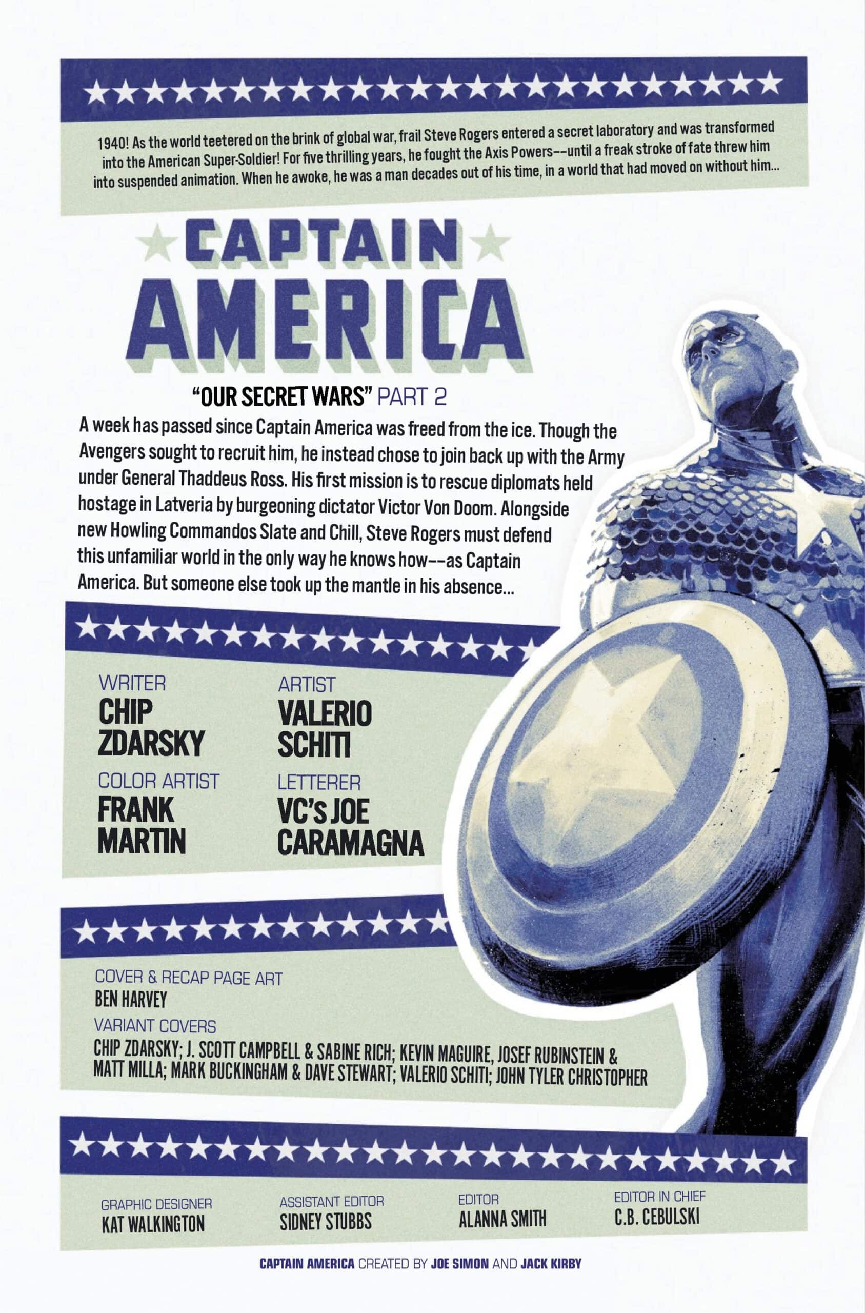 Out of the ice and into the fire! Eisner-nominated writer Chip Zdarsky (Daredevil) and superstar artist Valerio Schiti (Avengers) launch an all-new run of CAPTAIN AMERICA this July, and today, fans can see all the covers for the highly anticipated debut issue