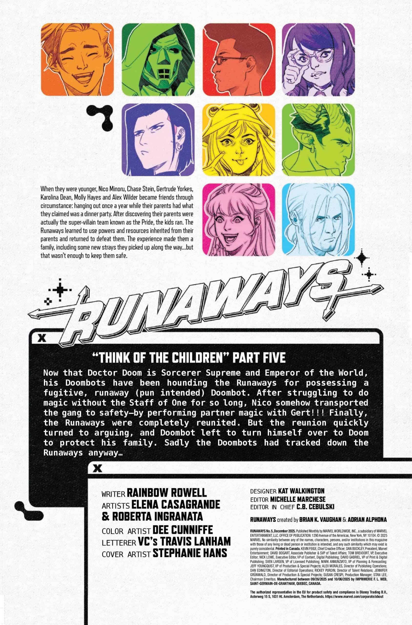 What does the future hold for The Runways in One World Under Doom: Runaways #5 on shelves and digital platforms or 29, 2025 from Marvel Comics