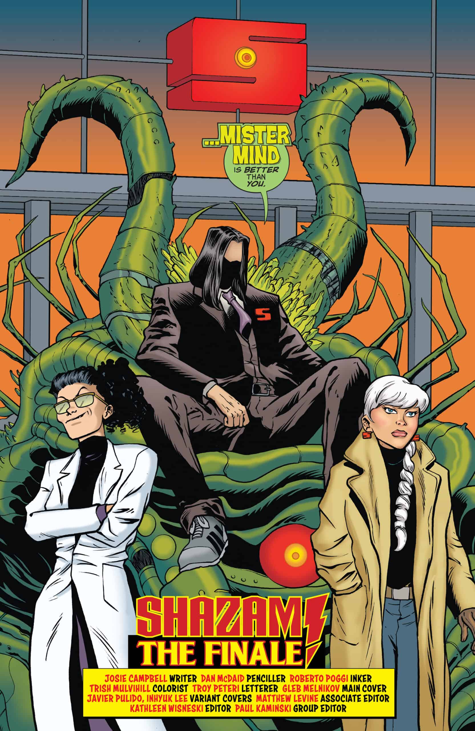 Mr. Mind has wormed his way across the entire world, and it will take way more than a single champion of Shazam to stop him! And finally, will the Shazamily become an official family?