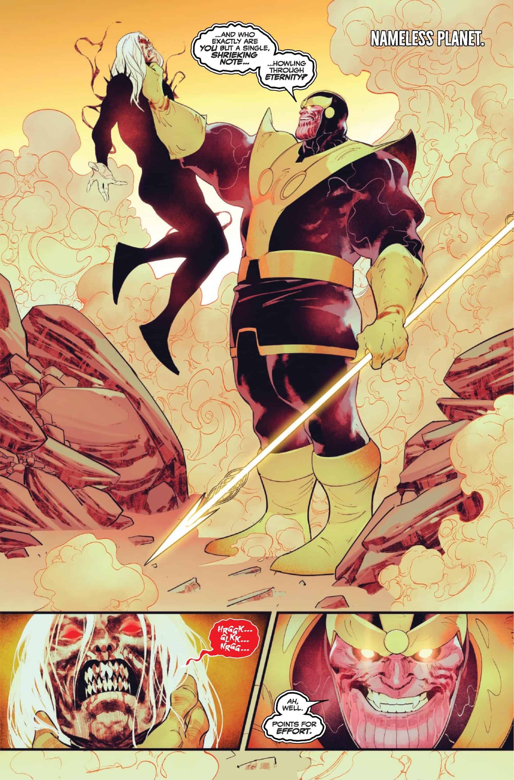 Darkness Spreads! Knull has finally found the treasure he’s been seeking — the All-Light spear — but there’s one titan-sized problem standing in his way: Thanos has the spear, and he’s not about to give it up without a fight! Meanwhile, Hela of Asgard has claimed the title Queen in Black and has begun her dark conquest of the cosmos! Witness a titanic fight for the light as darkness spreads across the galaxy!