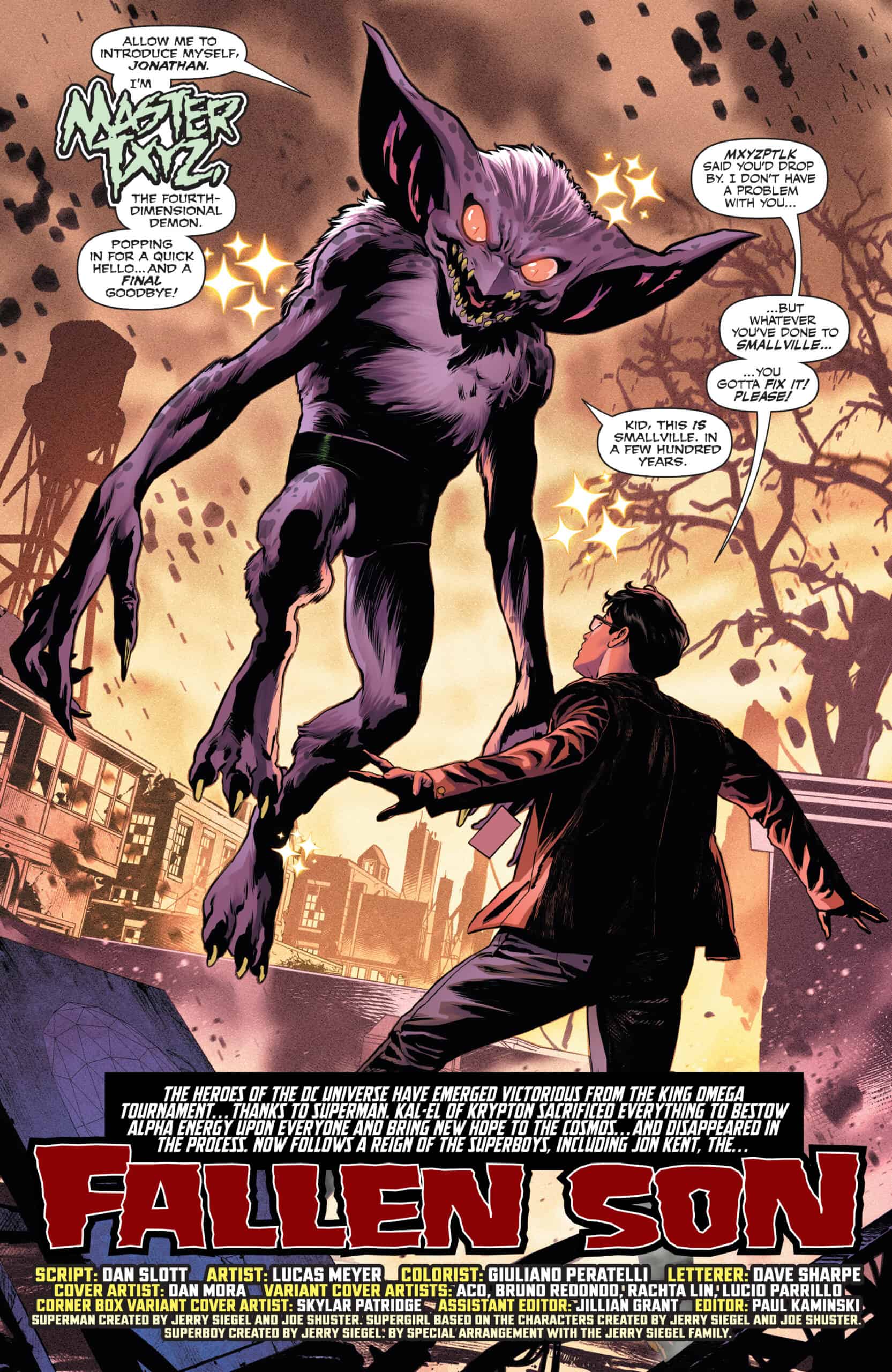 THE FINAL MOMENTS OF JON KENT! What’s worse than a fifth-dimensional imp? A fourth dimensional demon! Jon Kent faces off against his greatest archenemy, a terrifying time-bending foe who’s attacking him years before they’ve ever met! Witness the final moments of Jon Kent, Superman. Also in this issue: Superboy?! No. Really? Wait. What?! Yeah. You’d better not miss this one. Call your retailer now. Reserve your copy now. Don’t wait. Go. Call. Now!