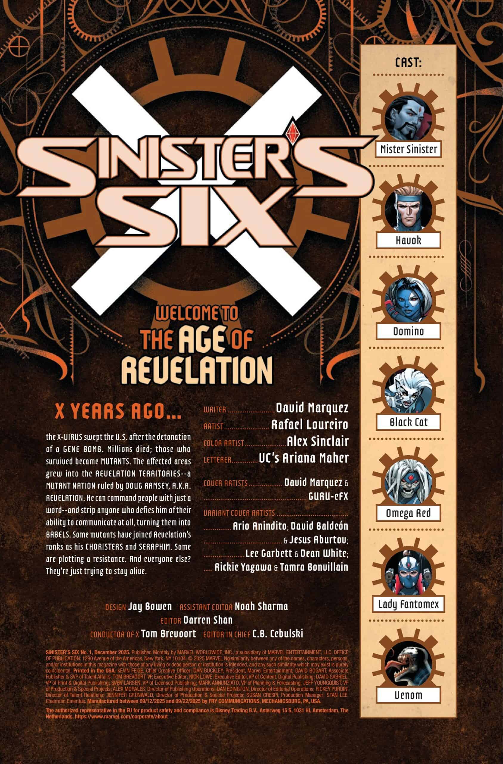 X YEARS LATER, Mr. Sinister assembles an elite strike force to take his rightful place… on the throne of Revelation in Sinister’s Six #1, on shelves and digital platforms October 15, 2025, from DC Comics