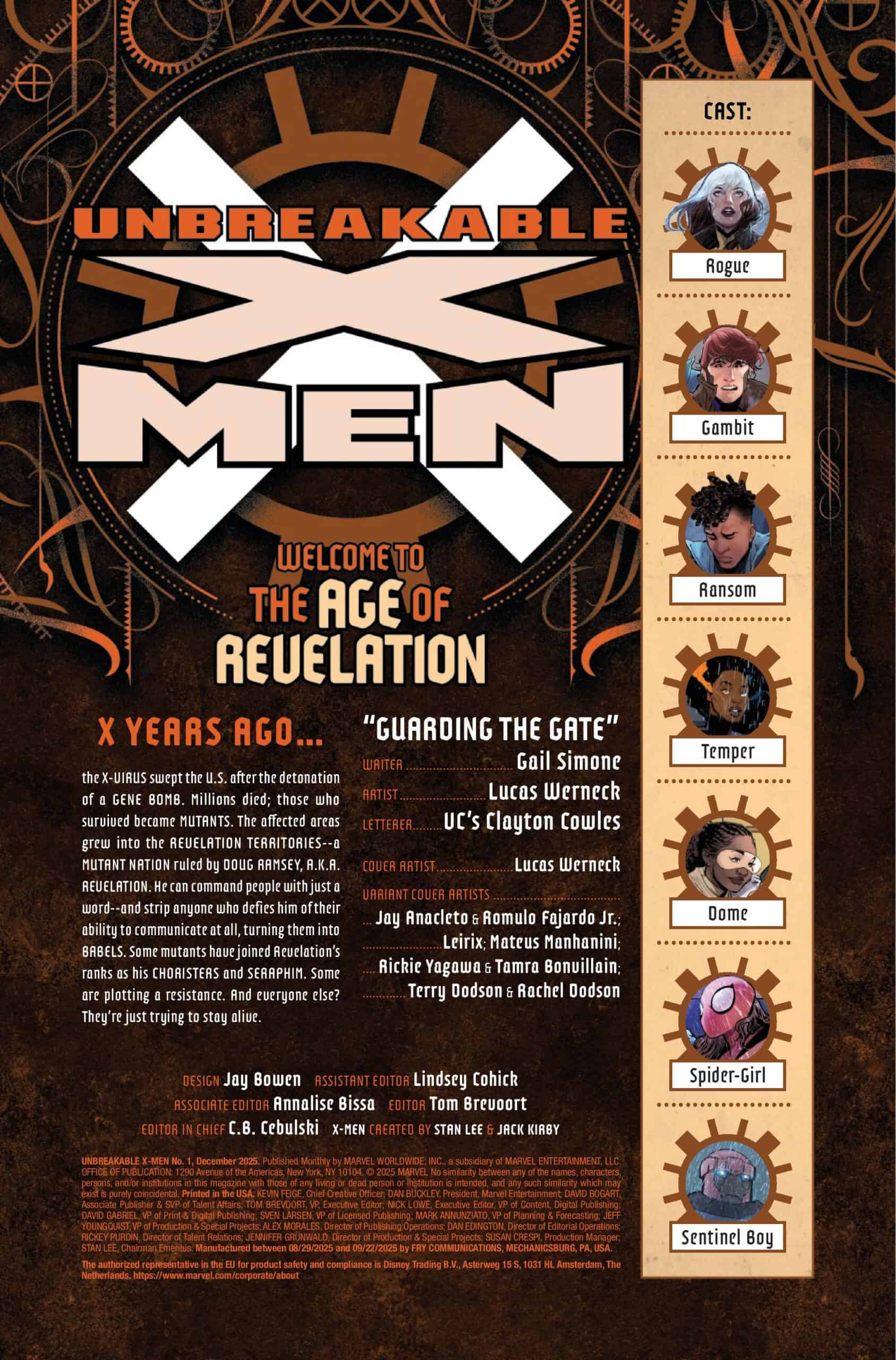 X YEARS LATER and the Uncanny X-Men have been shattered by loss and tragedy and scattered to different locations around the world in Unbreakable X-Men #1, on shelves and digital platforms October 15, 2025, from Marvel Comics.