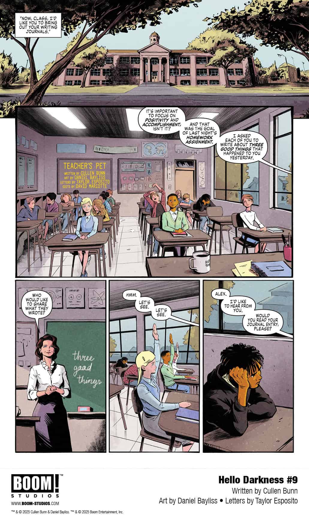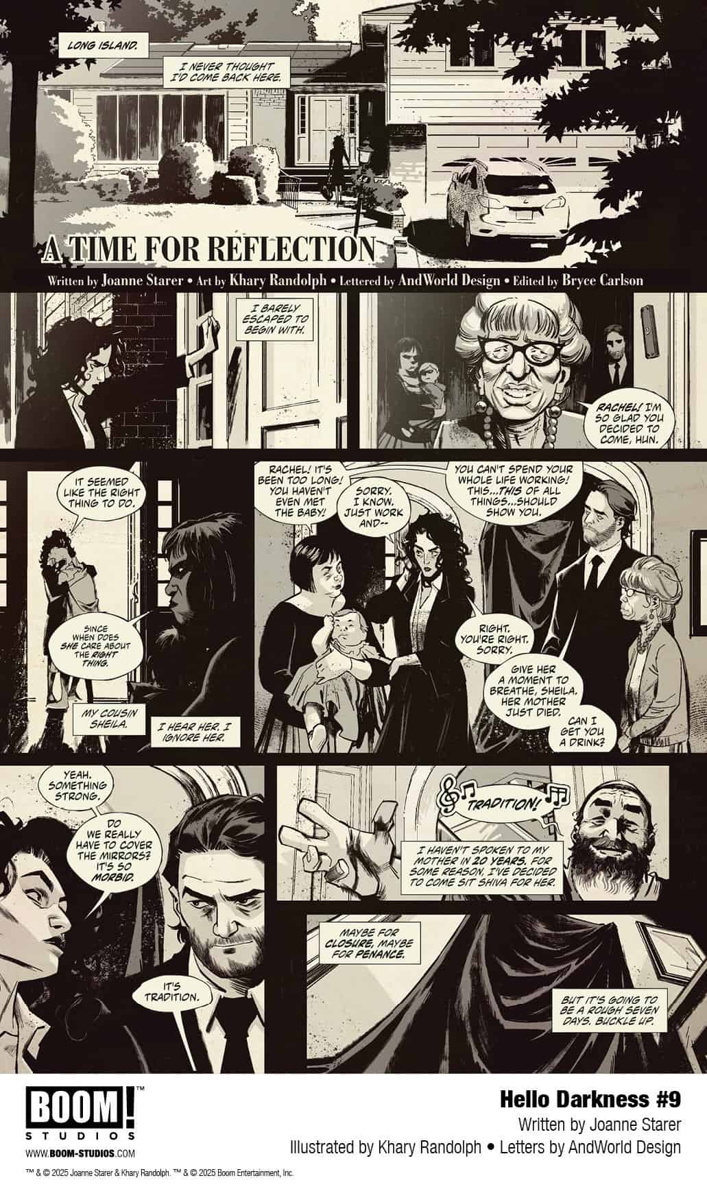 HELLO DARKNESS #9 will be available in comic shops March 26, 2025. It is available for pre-order at your local comic shop. Digital copies can be purchased from content providers, including Kindle, iBooks, and Google Play.