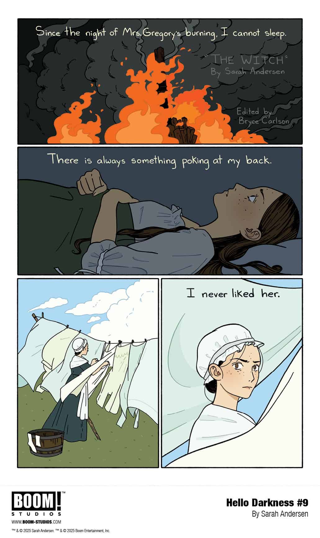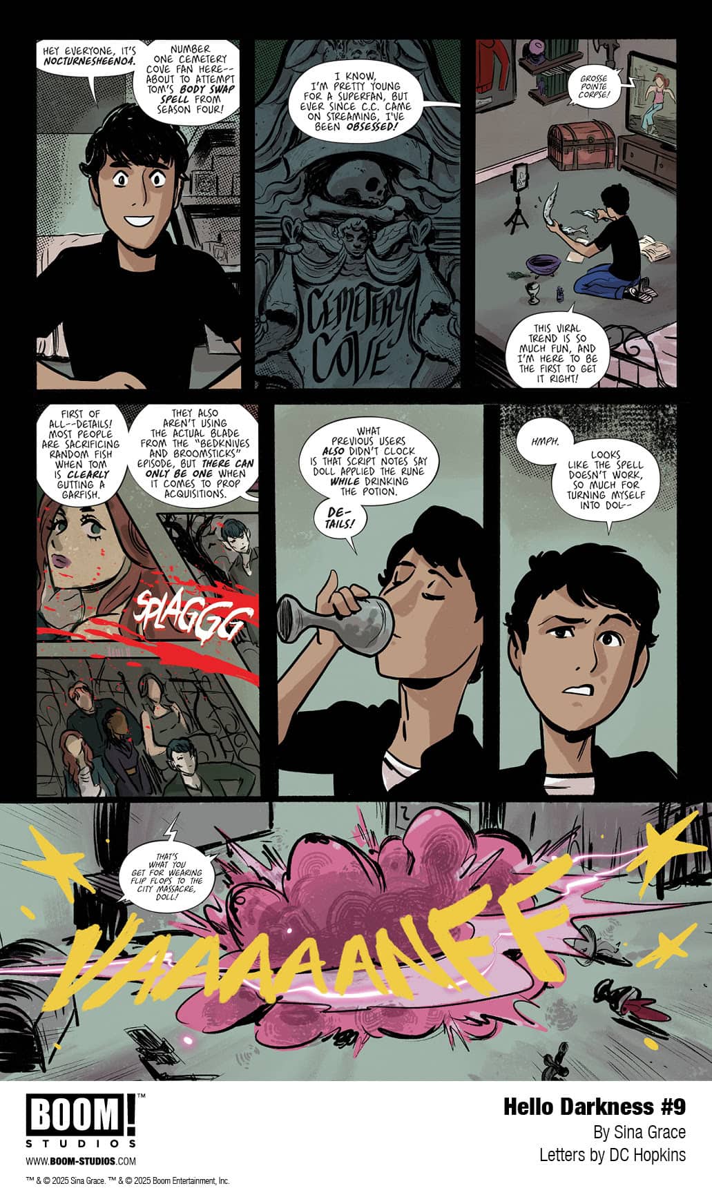 BOOM! Studios revealed a first look at HELLO DARKNESS #9, the terrifying continuation to the new ongoing anthology series featuring what BOOM! Studios is known for–the best in modern Horror, Fantasy, and Mystery, not to mention the darkest stories yet from a murderer’s row of world class creators including R.L. Stine, Francesco Francavilla, Garth Ennis, Becky Cloonan, James Tynion IV, Werther Dell’Edera, John Arcudi, Ryan Sook, Cullen Bunn, Daniel Bayliss, Sas Milledge, Sarah Gailey, Liana Kangas, Marguerite Bennett, Luana Vecchio, Michael W. Conrad, Martín Morazzo, Andy Lanning, Trevor Hairsine, Steve Orlando, A.L. Kaplan, Genevieve Valentine, Ming Doyle, Jude Ellison S. Doyle, Letizia Cadonici, Sarah Andersen, Chuck Tingle, Robert Hack, and more! Everything from primal fears to modern political horrors will be explored, in the classic style of Creepy and Eerie and the contemporary chills of Black Mirror.