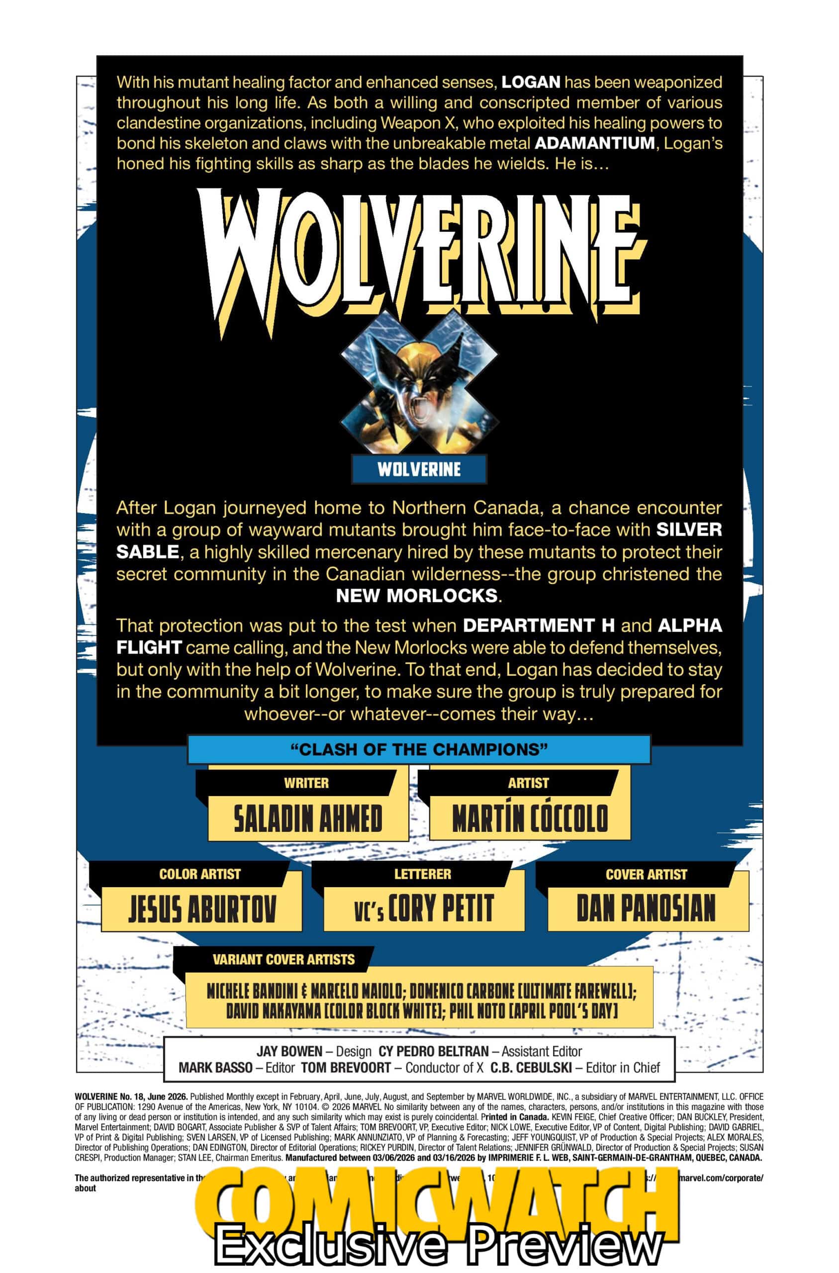 Logan and Silver Sable train the New Morlocks as DEATH waits in the wings in Wolverine #18 on shelves and digital platforms April 8, 2026, from Marvel Comics